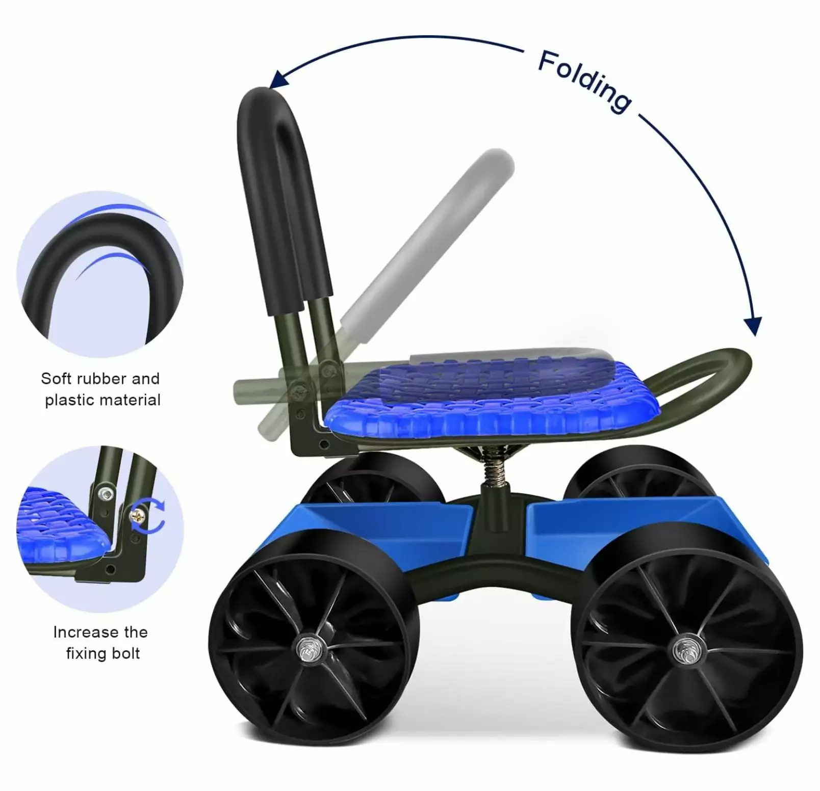 - Sturdy garden scooter with seat supports 300 LBS.