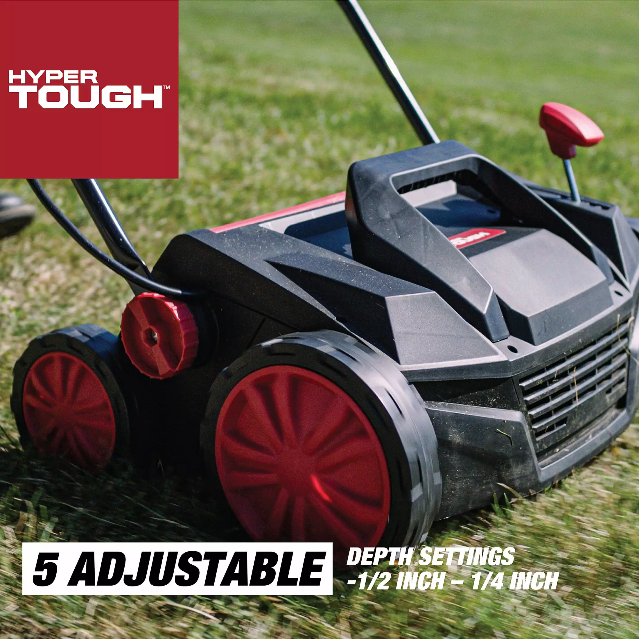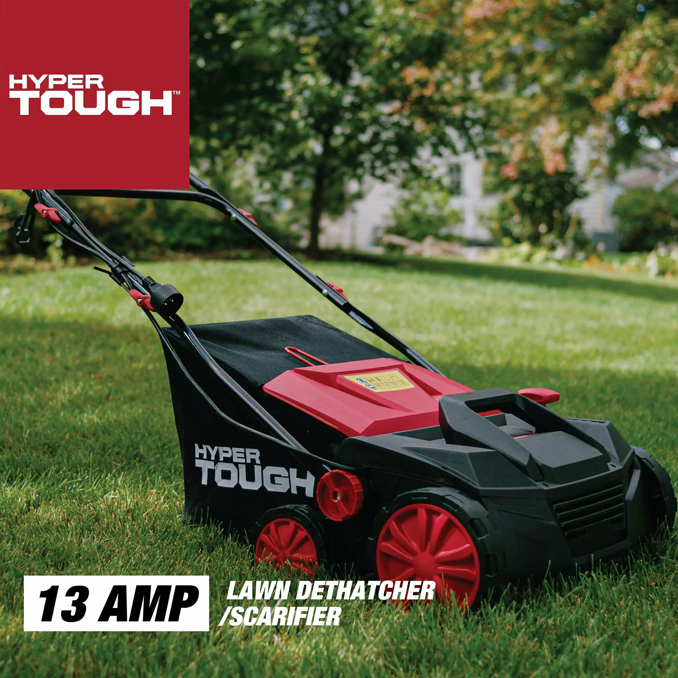 The Hyper Tough electric lawn dethatcher/scarifier provides you efficient and relaxing experience to remove old grass and roots for a healthier lawn. Besides. it has 5 adjustable depth settings and you can change it easily by a handle. This corded electric dethatcher has a powerful 13 Amp motor and refined frame that provide you a great maneuverability and an efficient cutting performance. With angle adjustment. you can change the operation angle easily to fit different ground or slope. The easy lift bag removal allows you to quickly and easily empty the grass catcher bag and get back to work. In addition. the foldable handle and carrying handle are ideal for storing and carrying.
