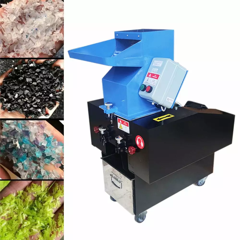 This electric plastic crusher grinder granulator is used to crush large solid materials to the required size. It can shred wood. plastic. nylon products. cloth. paper. circuit boards. PP/PC. PA/PE. PVC. PET/ PS. FRP. aluminum bottle caps. spices. corn. grain and etc.