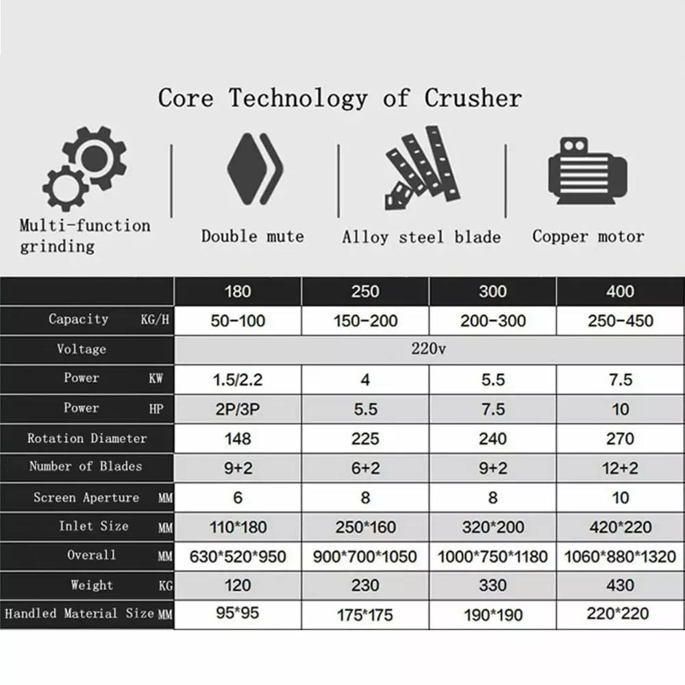 - [SECURE & WARRANTY] – The motor of the crusher has overload protection and power chain protection device. which doubles the motor protection and user safety.