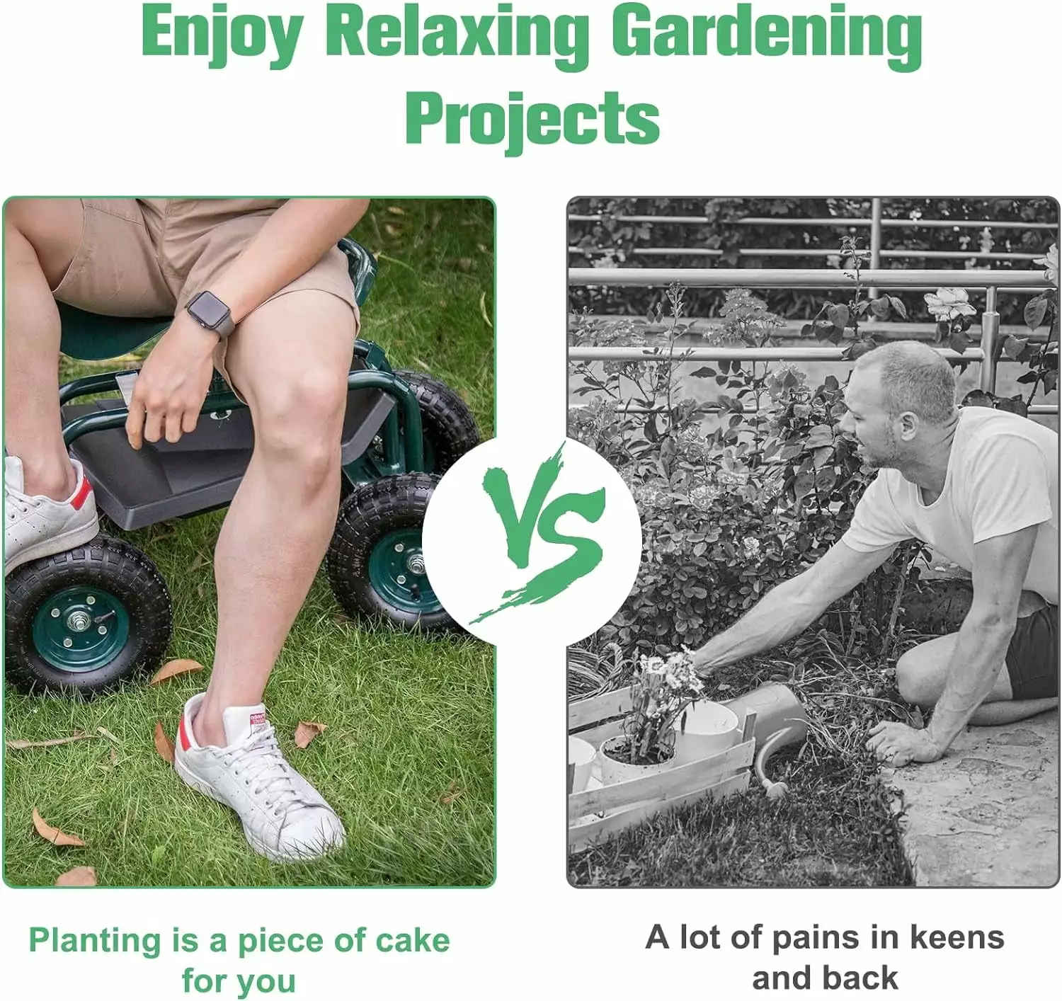 Kinbor rolling garden work scooter is prepared to serve you in all aspects wherever the seat and mobility is needed.