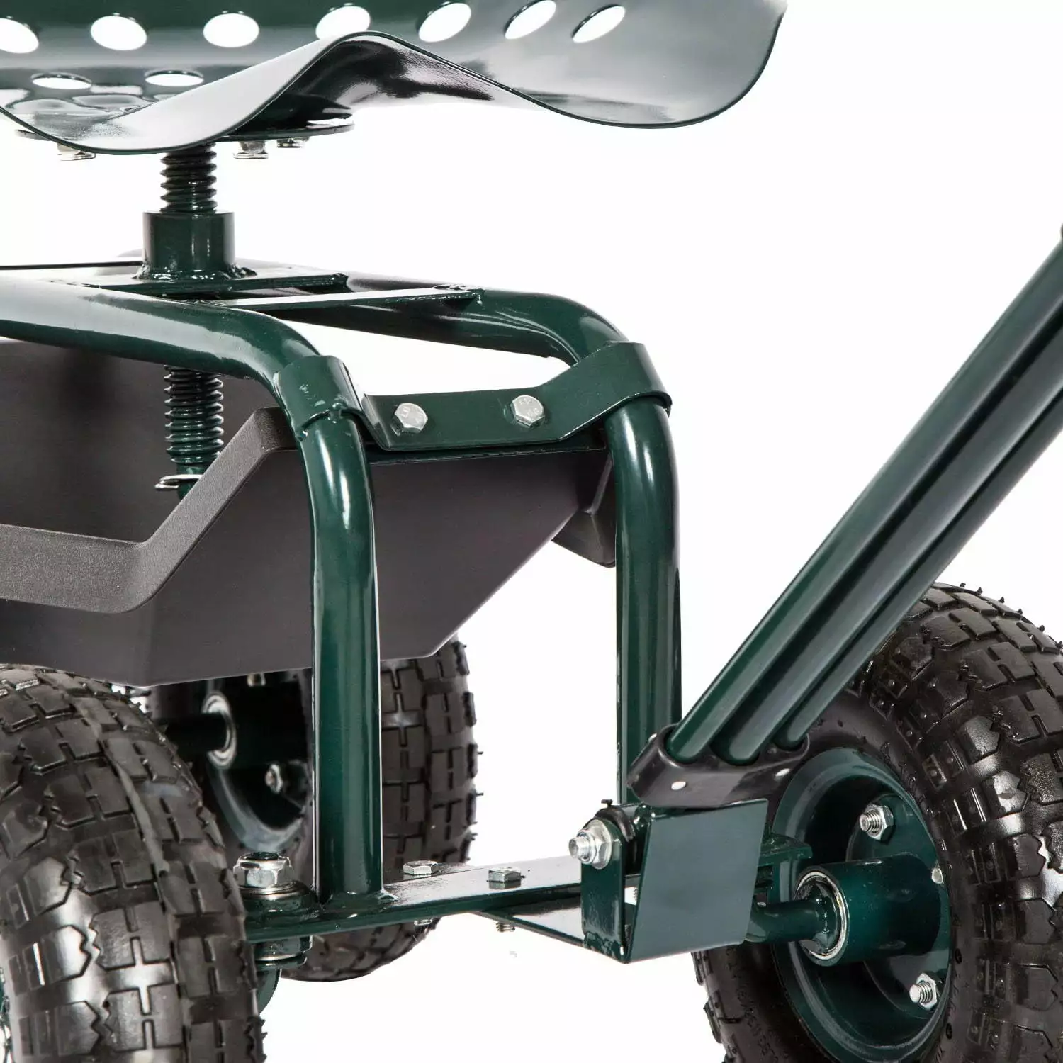 Kinbor Garden Cart Rolling Work Seat with Tool Tray Heavy Duty Scooter Gardening Planting. Green