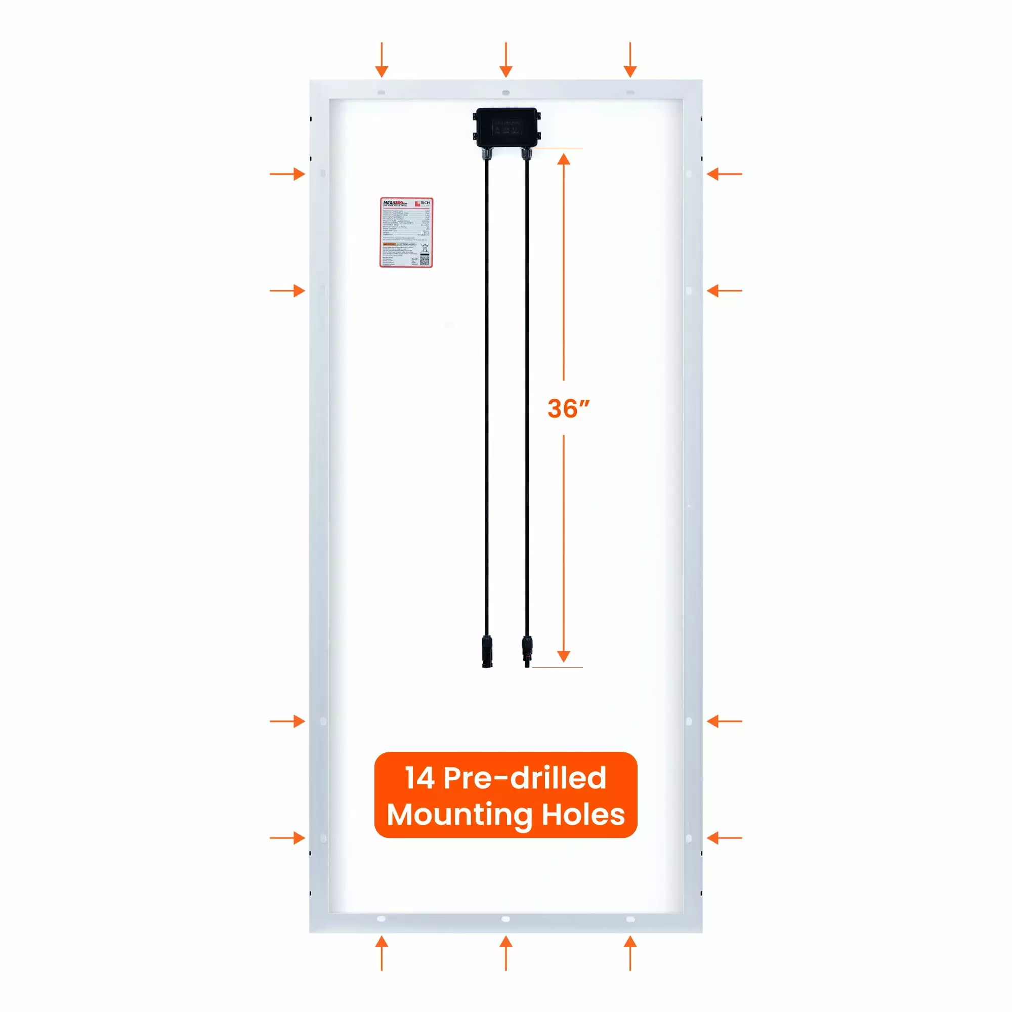 - Anodized Aluminum Frame|High Transmission|AR (Anti-Reflective) Coated Tempered Glass|MEGA 200.RICH.Ay.36.14 Pre-drilled Mounting Holes|MEGA200 MAX.200 WATT SOLAR PANEL