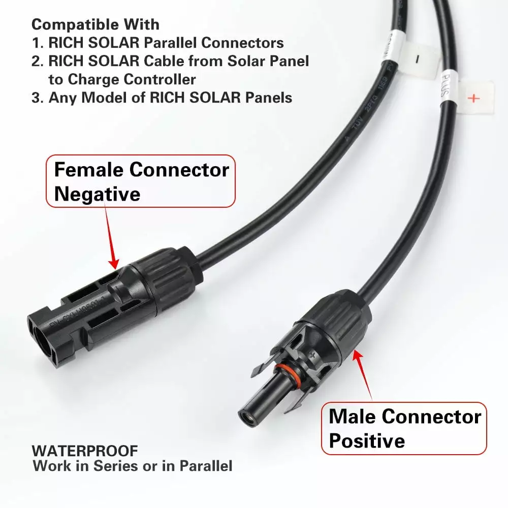 Size: 58.7” x 26.8” x 1.4”. 3′ cable with connectors. generate 5.32 amp power. charge 12 volt or 24 volt battery. Industry standard. quick connect cables. work in series or in parallel.