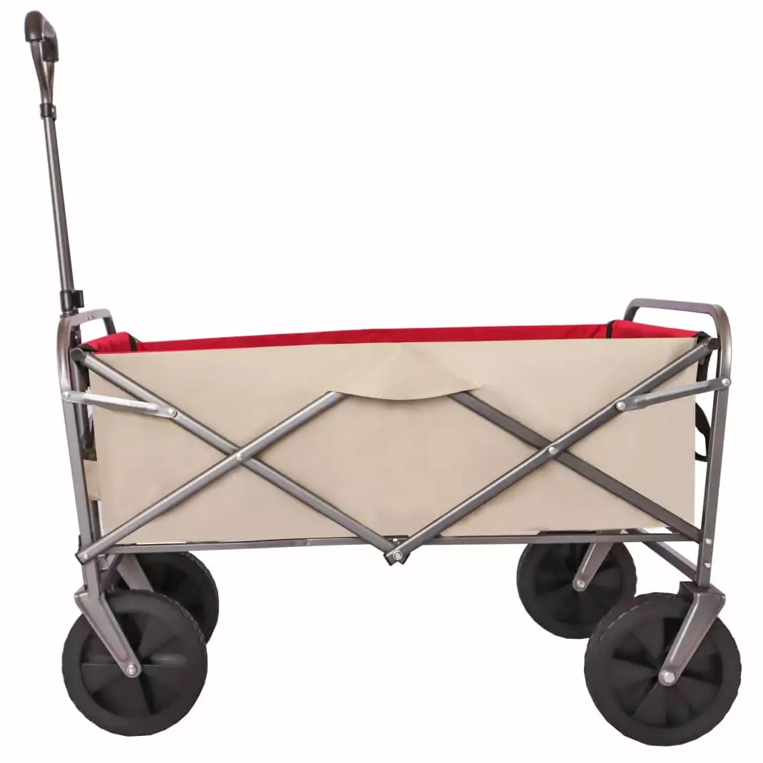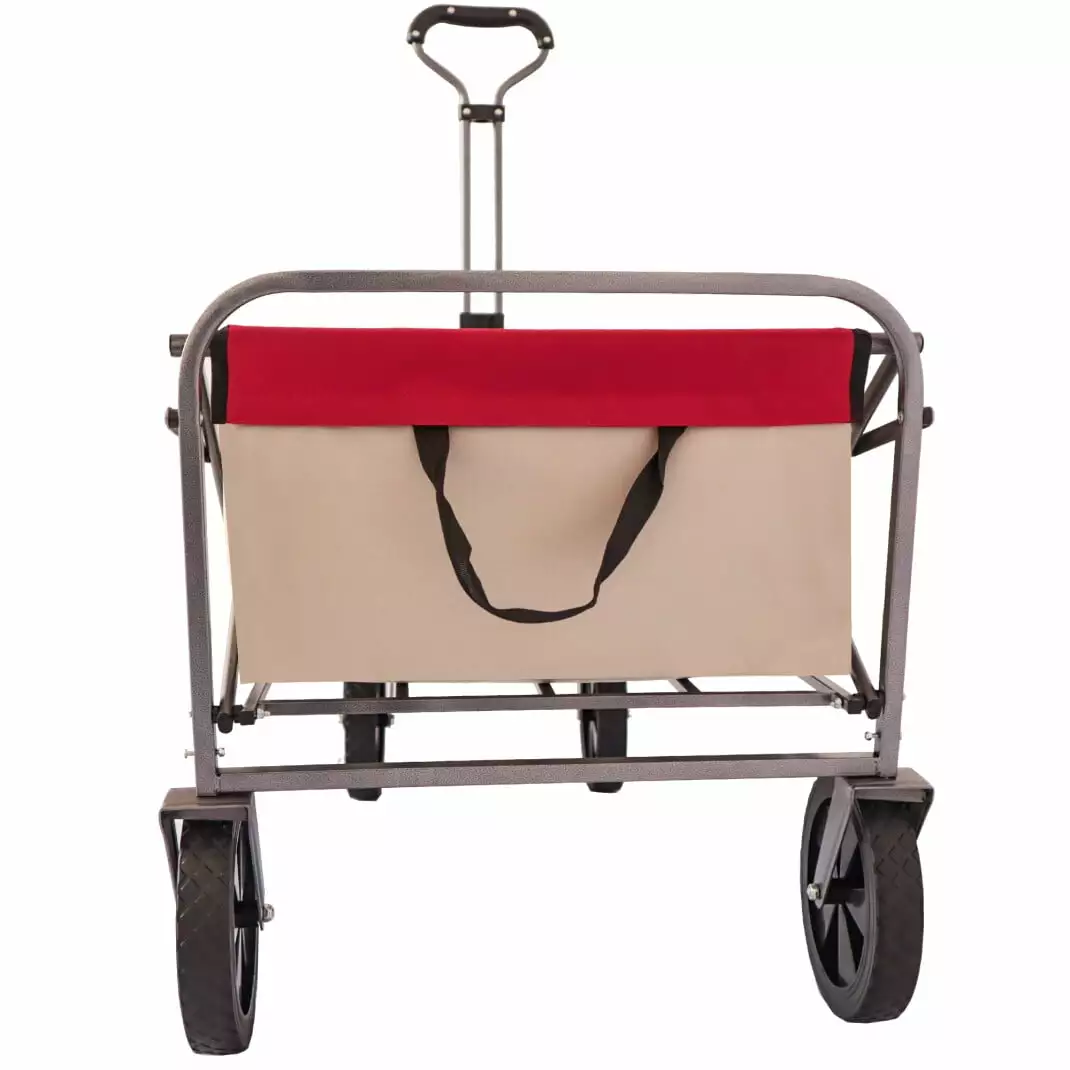 Metal Wagon Cart. Travel-friendly Wagon Cart with Universal Wide Wheels. Folding Garden Carts with Adjustable Handle. Heavy Duty Utility Wagon Cart for Shopping. Park Picnic. Beach Trip. Camping. Khaki