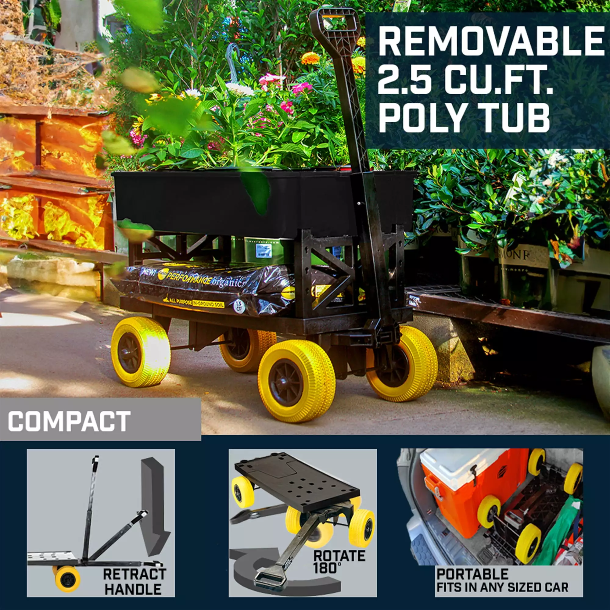 Multi-Purpose Outdoor Utility Wagon – Black on Yellow| with 2.5 cu.ft. Black Poly Tub