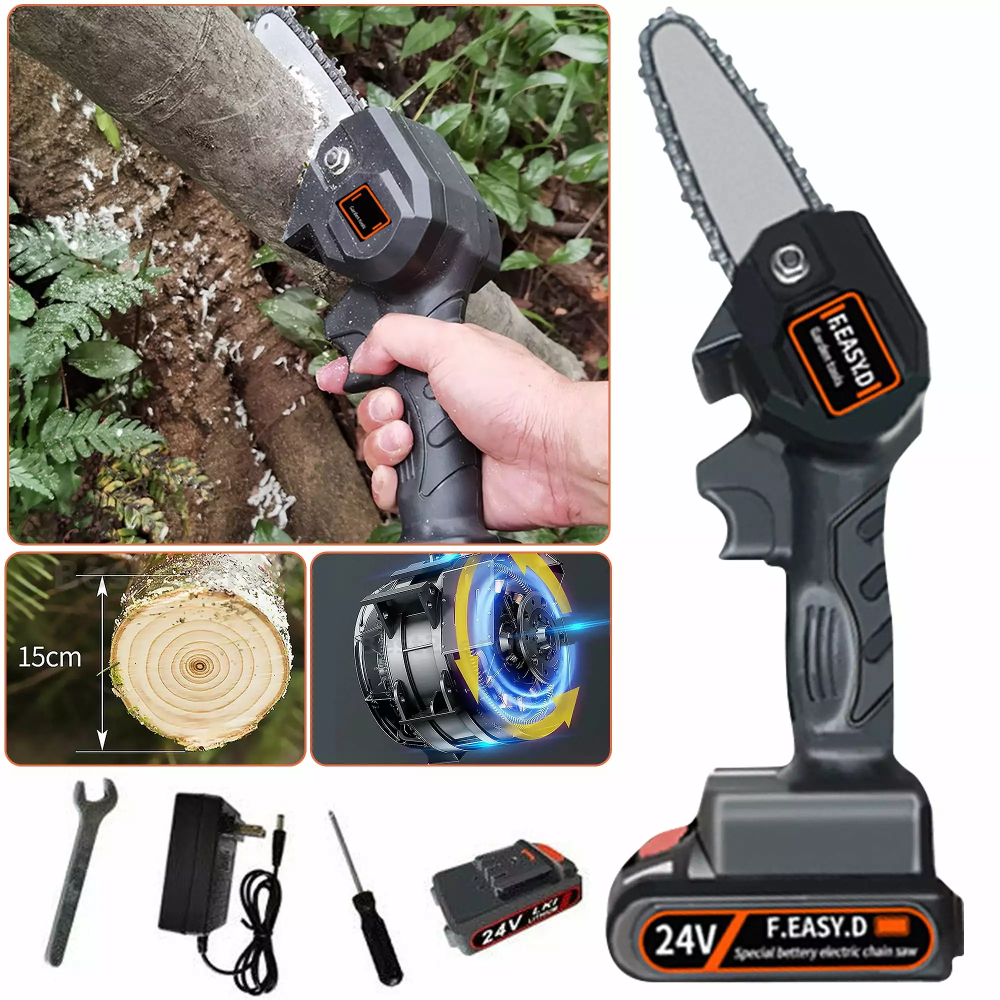 - The mini chainsaw cordless has been assembled. you only need to simply use the included screwdriver to turn the screw to adjust the chain tightness. and finally tighten the screw. then plug the battery to use it.