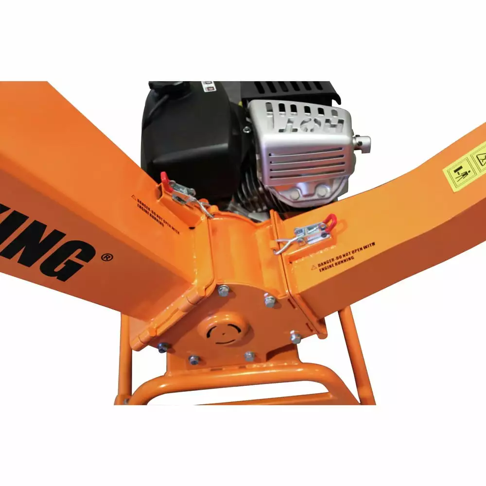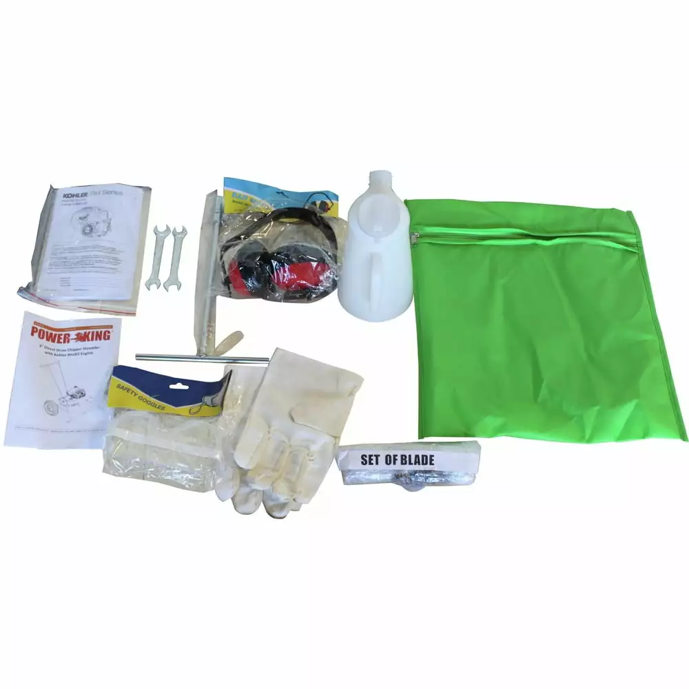 Grind your tree-trimmings. leaves and broken branches for disposal or useful mulch with the Power King 2.8 in. 6.5 HP Chipper Shredder. This powerful and compact machine is directly driven by the RH265 6.5 HP KOHLER motor. No belts. no loss of power. The drum style design self-feeds entire branches with leaves intact to be processed effortlessly. Large A/T tires. grab handles. and the units light weight make it easy to maneuver around the job site. Easy to open chute latches allow quick access for anvil adjustments and blade replacements. KOHLER RH265 was designed for the everyday homeowner with its easy 1 lever operation. Includes Power King 1-year chassis warranty and KOHLER Engines 2-year residential / 90-day commercial engine warranty.