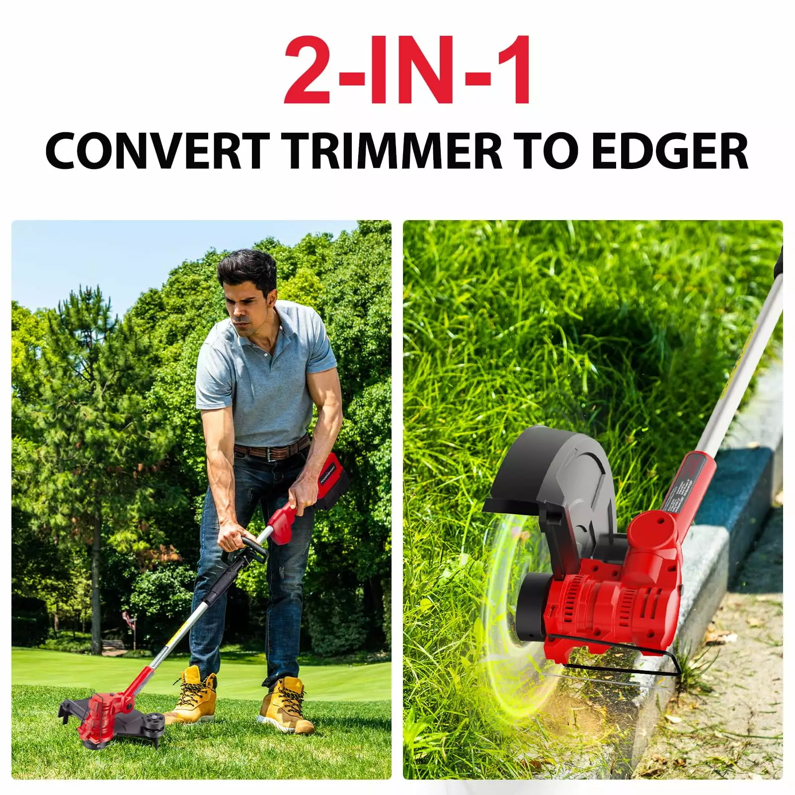 - 40V String Trimmer/Edger – 13-inch cutting diameter. 2-in-1 cordless trimmer/edger. only 9 pounds.