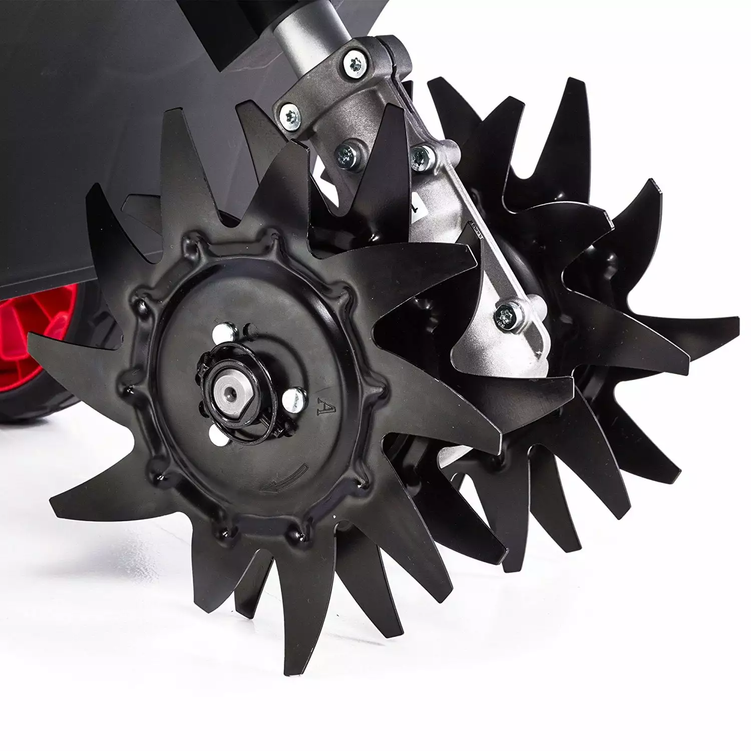 - 4 hardened Steel tines offer an 8 tilling width and 5 tilling depth