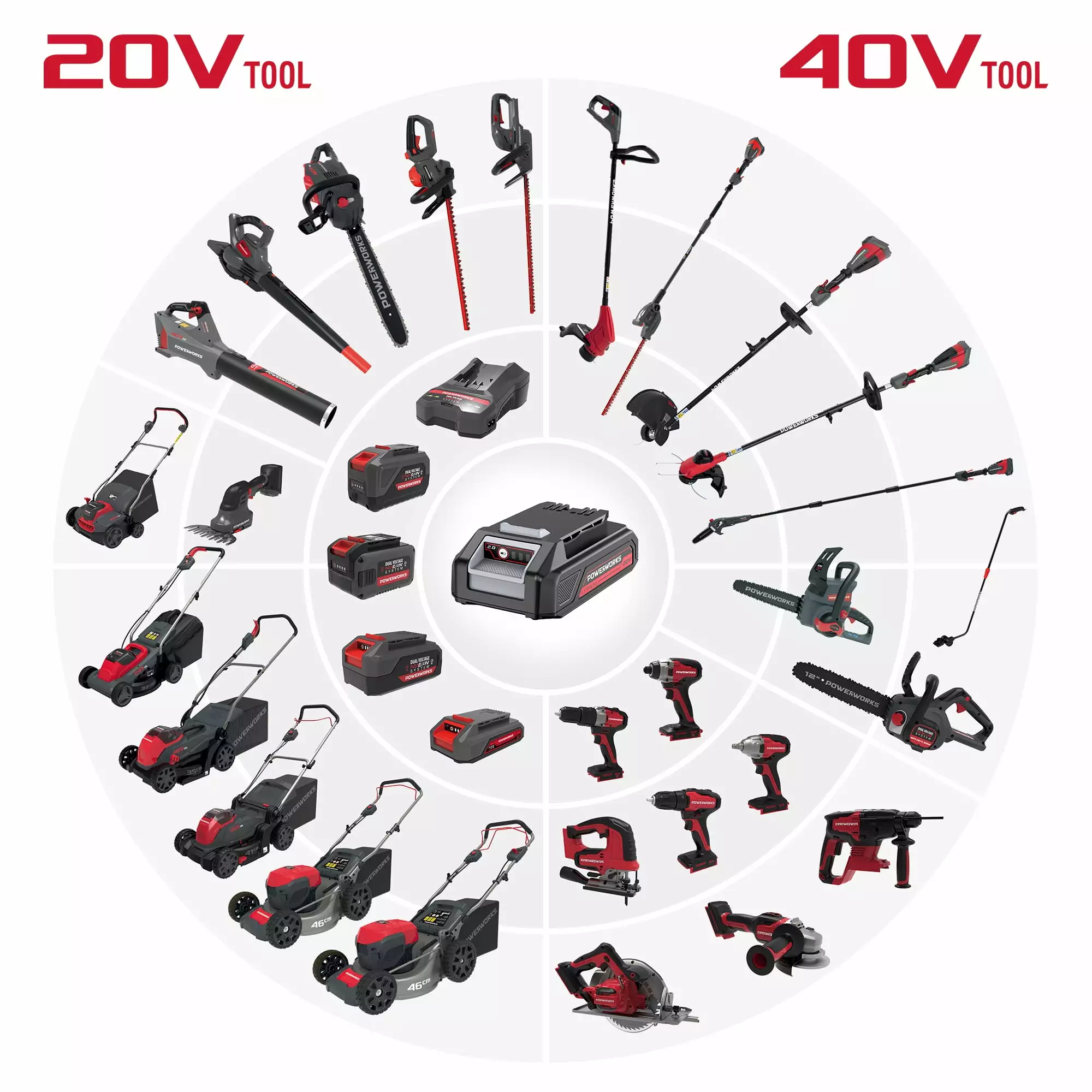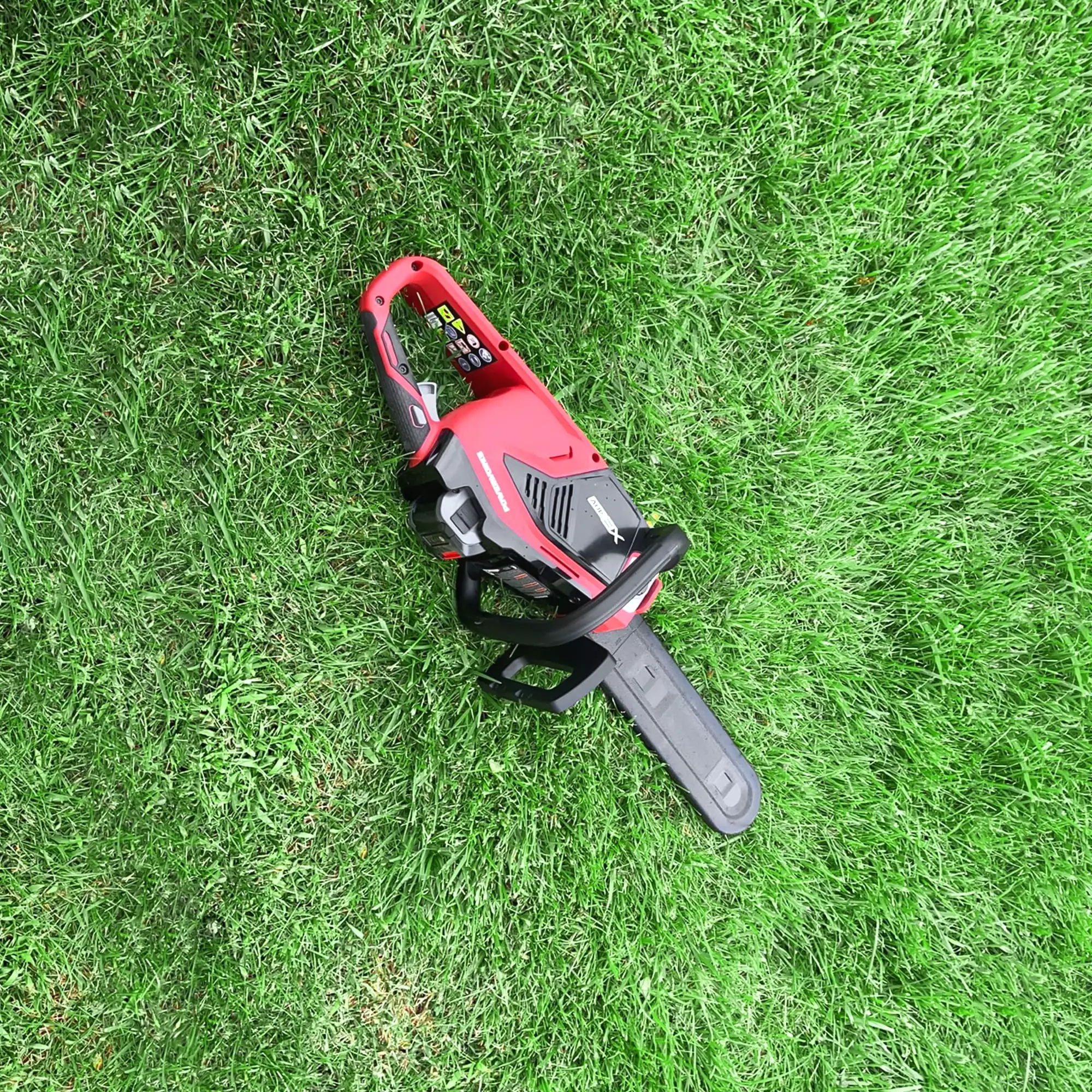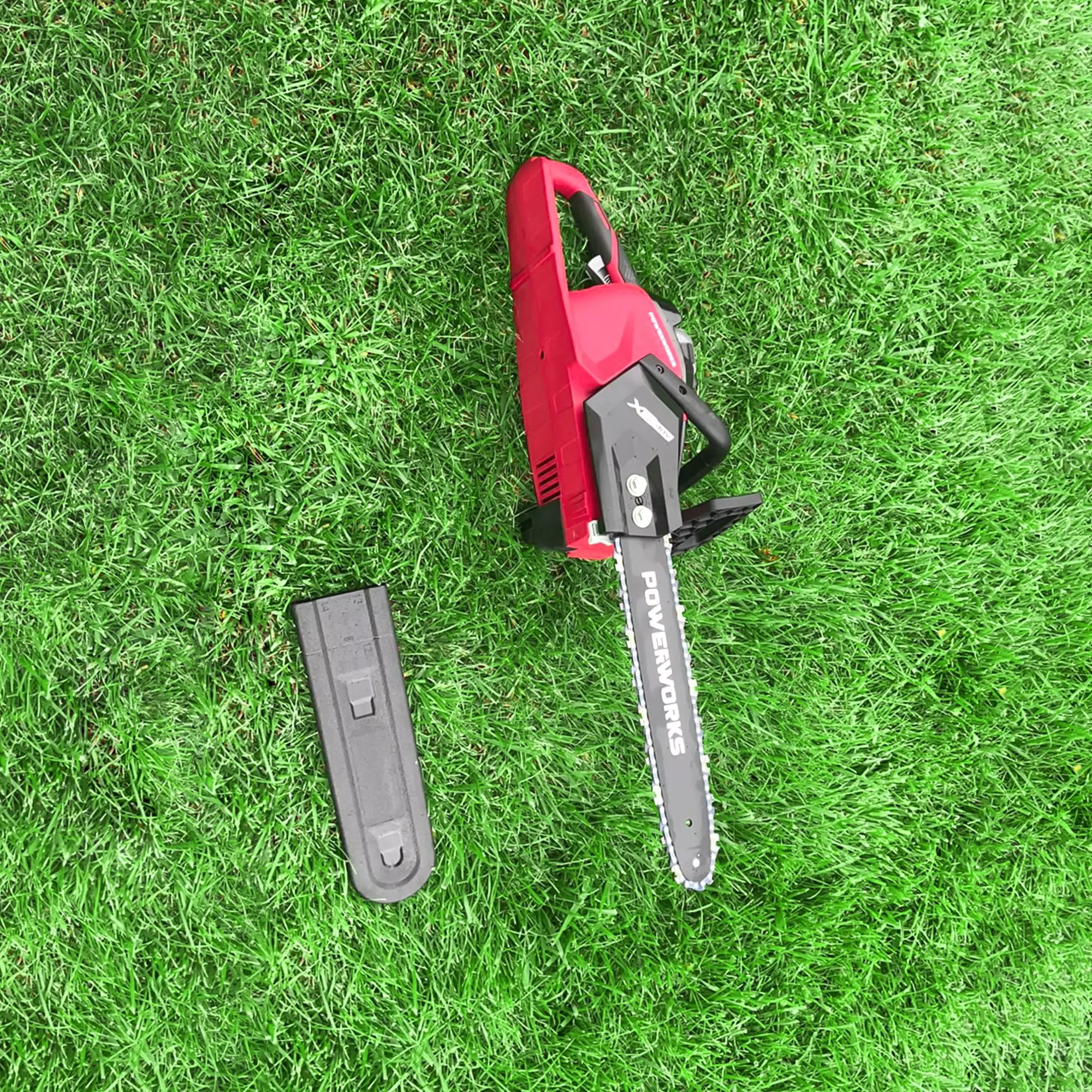 This Powerworks 14 inch. Chainsaw features a high-efficiency 40V brushless motor with electric start which provides more power. torque. and longer life without the hassle of gas. Equipped with 14 in. bar and chain for dependable performance. Automatic oiler easily applies oil to the chain keeping it lubricated. Chain brake halts the chain movement to prevent accidental kick back. Our Powerworks brushless motor provides your Powerworks tool with longer run-time. more torque and more power. This leads to less wear and tear. extending the life of the tool.