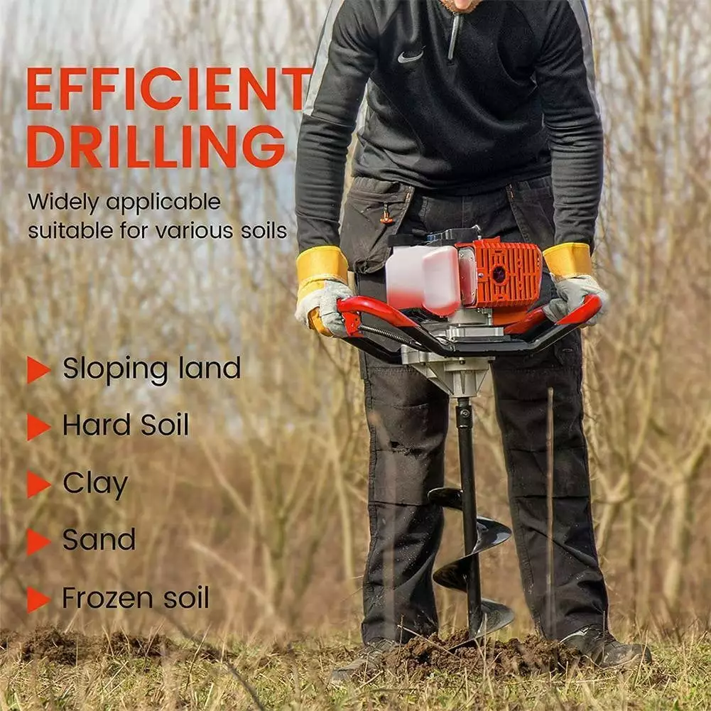 PRIJESSE 62cc 2.1KW Post Hole Digger Gas Powered Earth Digger with 3 Extension Rods + 3 Auger Drill Bits (3 5 & 8)