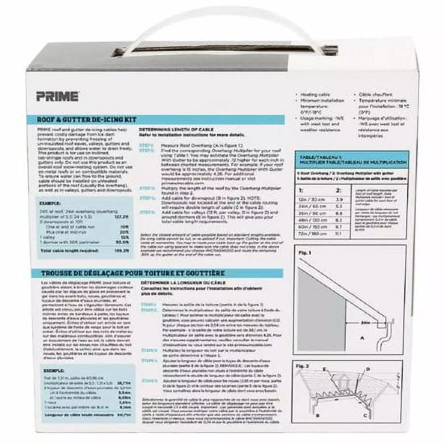 PRIME roof and gutter de-icing cables help prevent costly damage from ice dam formation by preventing freezing of un-insulated roof eaves. valleys. gutters and downspouts to allow water to drain freely.