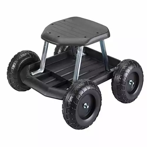 - Work Smarter. Not Harder ?C No more stooping or bending. this garden scooter with a durable molded plastic seat helps alleviate the back and knee pain associated with planting. weeding and other ground work