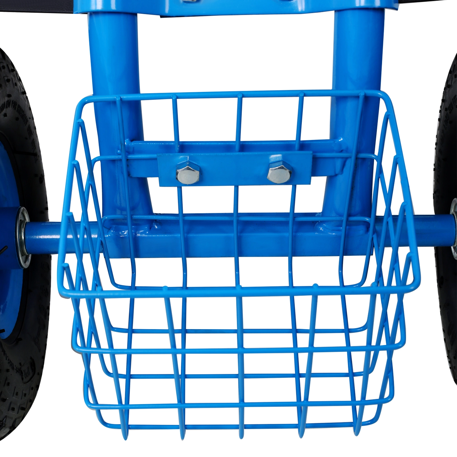 This garden cart is made from high-quality steel frame. ensuring it is sturdy and built to last. With a weight capacity of up to 300 lbs. it can accommodate all of your tools and equipment without bending or sagging.Equipped with four large wheels with an excellent grip pattern. this garden cart with seat is easy to manoeuvre and suitable for all kinds of terrain. Whether you’re navigating mud. gravel or uneven surfaces. it is up to the task.