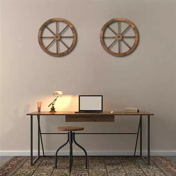 SALE CLEARANCE 2pcs 24-Inch Old Western Style Garden Art Wall Decor Wooden Wagon Wheel Brown