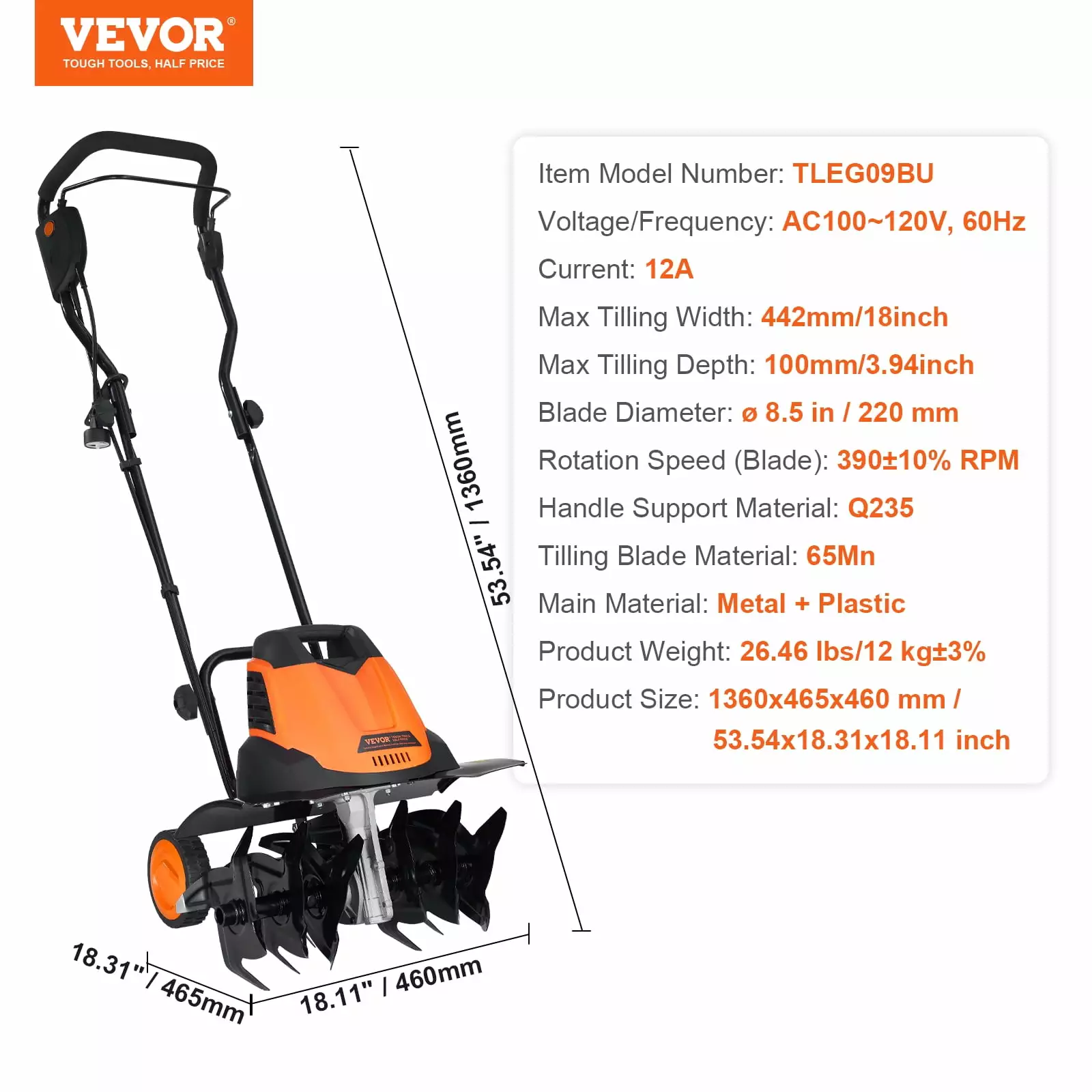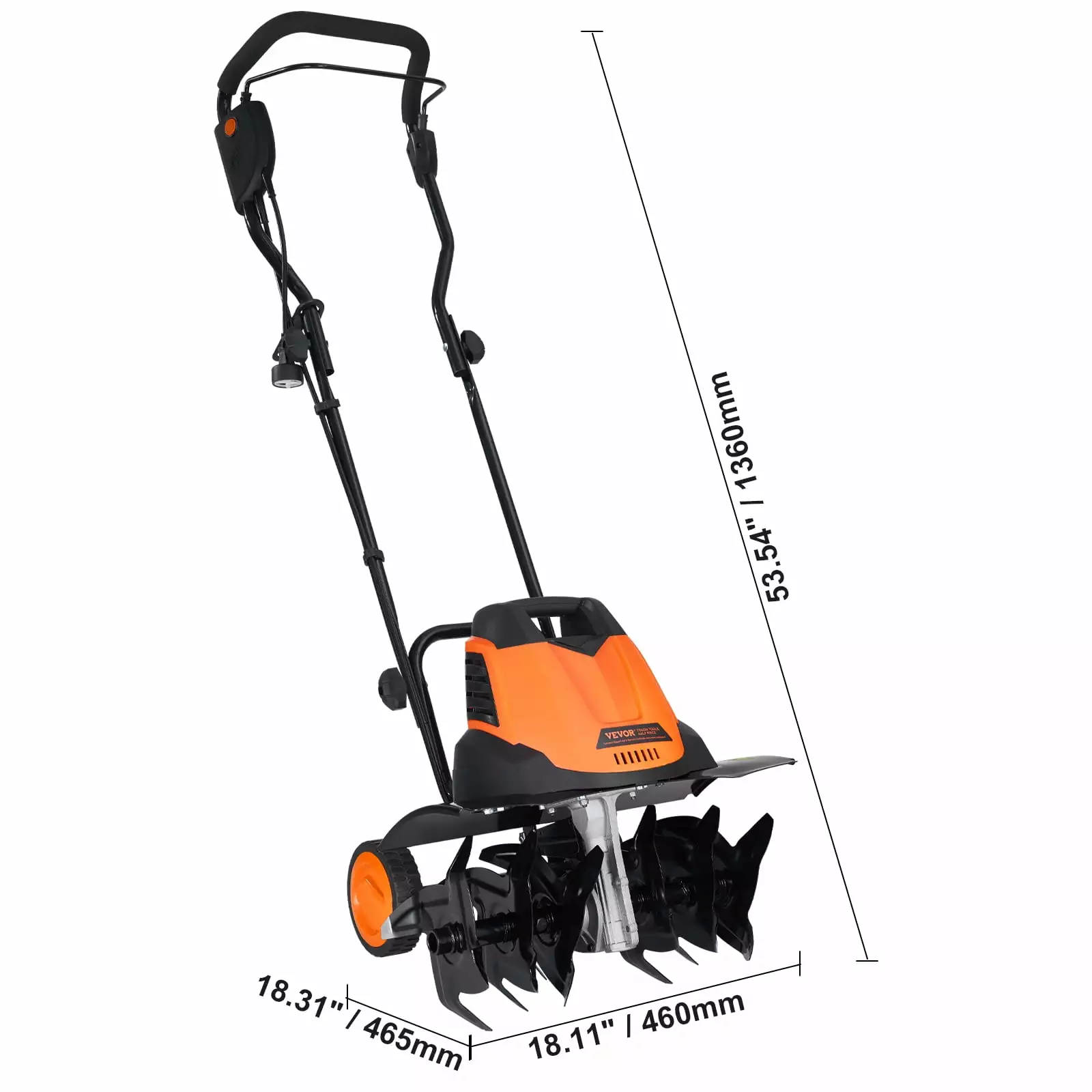 - High-performance Motor: The powerful 12A motor with 390 PRM delivers robust performance and high efficiency. It can handle large areas of soil or tough ground. making tilling easier. Equipped with an overload protection system. it automatically shuts off if it is obstructed. preventing damage and extending its lifespan.