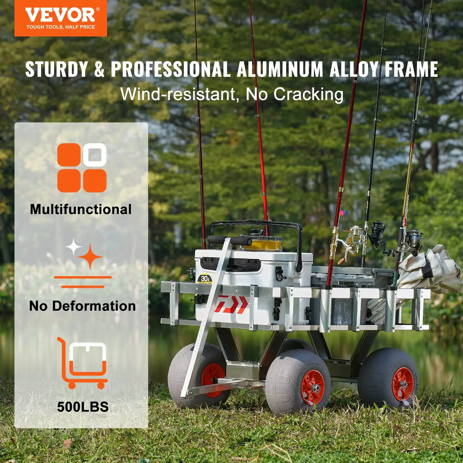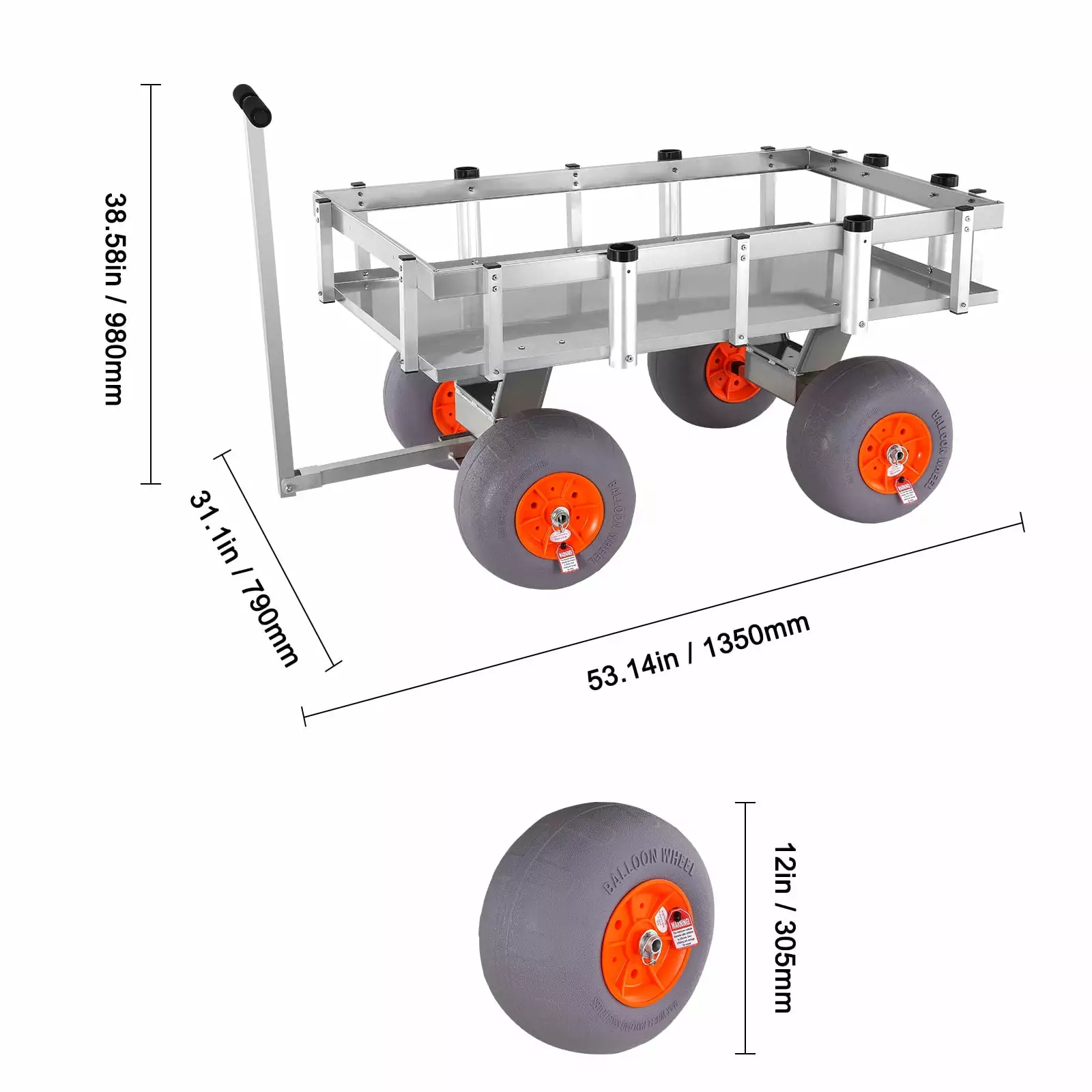 SKYSHALO Beach Fishing Cart Fishing Trolley 500 lbs with Balloon Tires for Sand