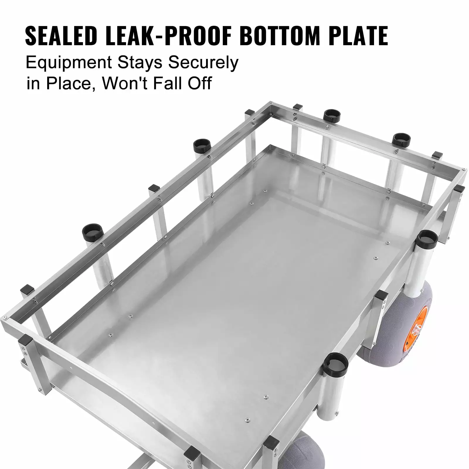 - Ample Storage Space: With a frame that’s 45.9 inches long. 27 inches wide. and 7.9 inches high. plus sturdy 13-inch wheels. this fishing cart can handle up to 500 lbs. Surf gear. beach essentials. you name it ?C pack it up and head out without a worry!