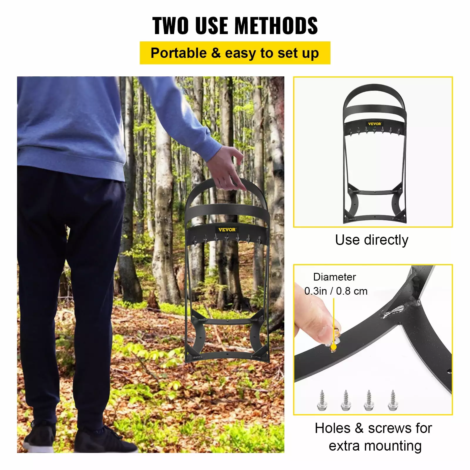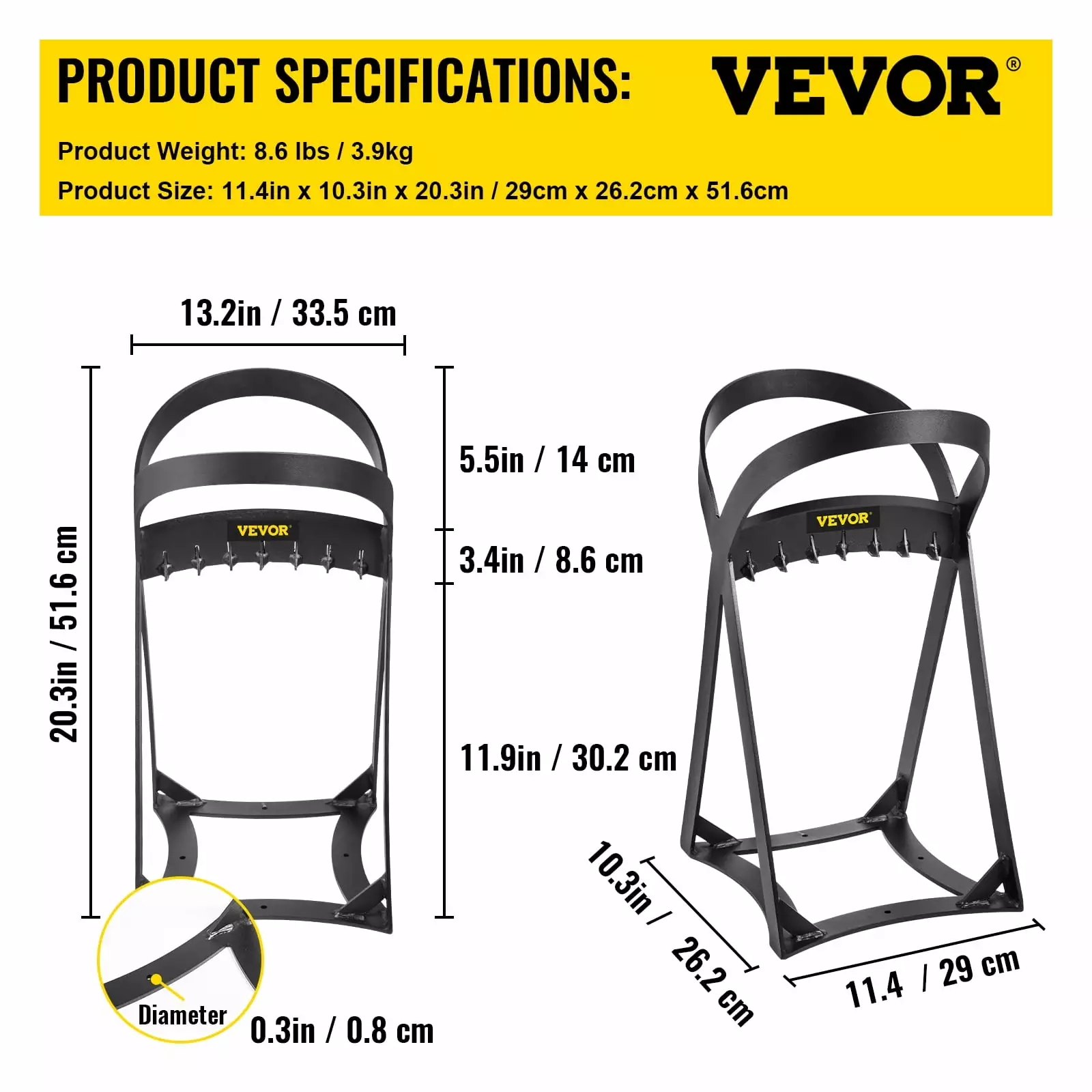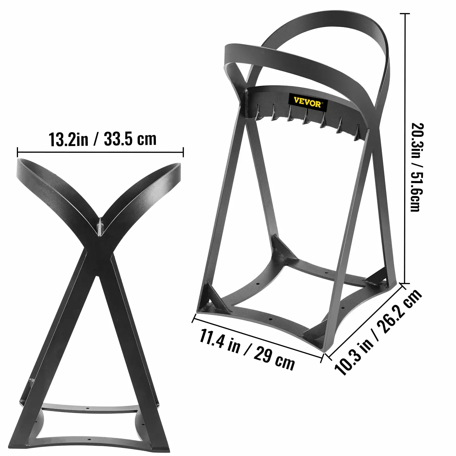 - Appropriate Dimension: The top inner diameter of the wood splitter is 13.2/33.5 cm. and the height is 20.3/51.6 cm. fit for woods up to 8/20 cm diameter. The wide mouth and tall frame allow it to cut large logs. and the slanted alternating teeth help split the logs easily.