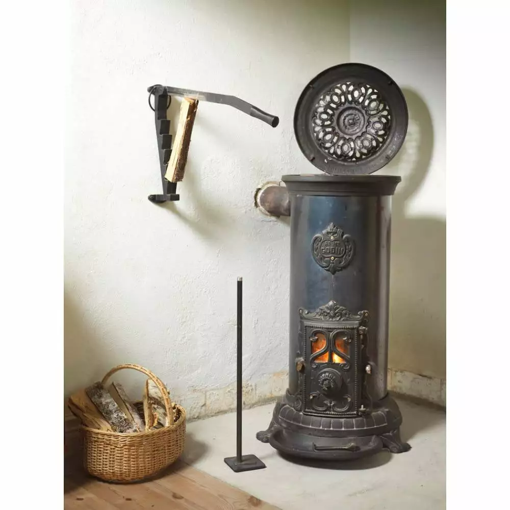 Stikkan Wall Mounted Cast Iron Wood Splitting Kindling Maker Black. Safer Solutions to Cutting Kindling – No Axe Needed! This handy splitter helps you split wood with less force. no bending or swinging. Just mount to a wall. insert wood and lower the steel wedge. Mount easily on a wall. post or tree. Engineered to last. Durable cast iron construction. Has a safety lock. 10-year warranty. Dimensions: 23"H x 3-1/4"W x 5"D. Weight: 10 lb. Sweden.