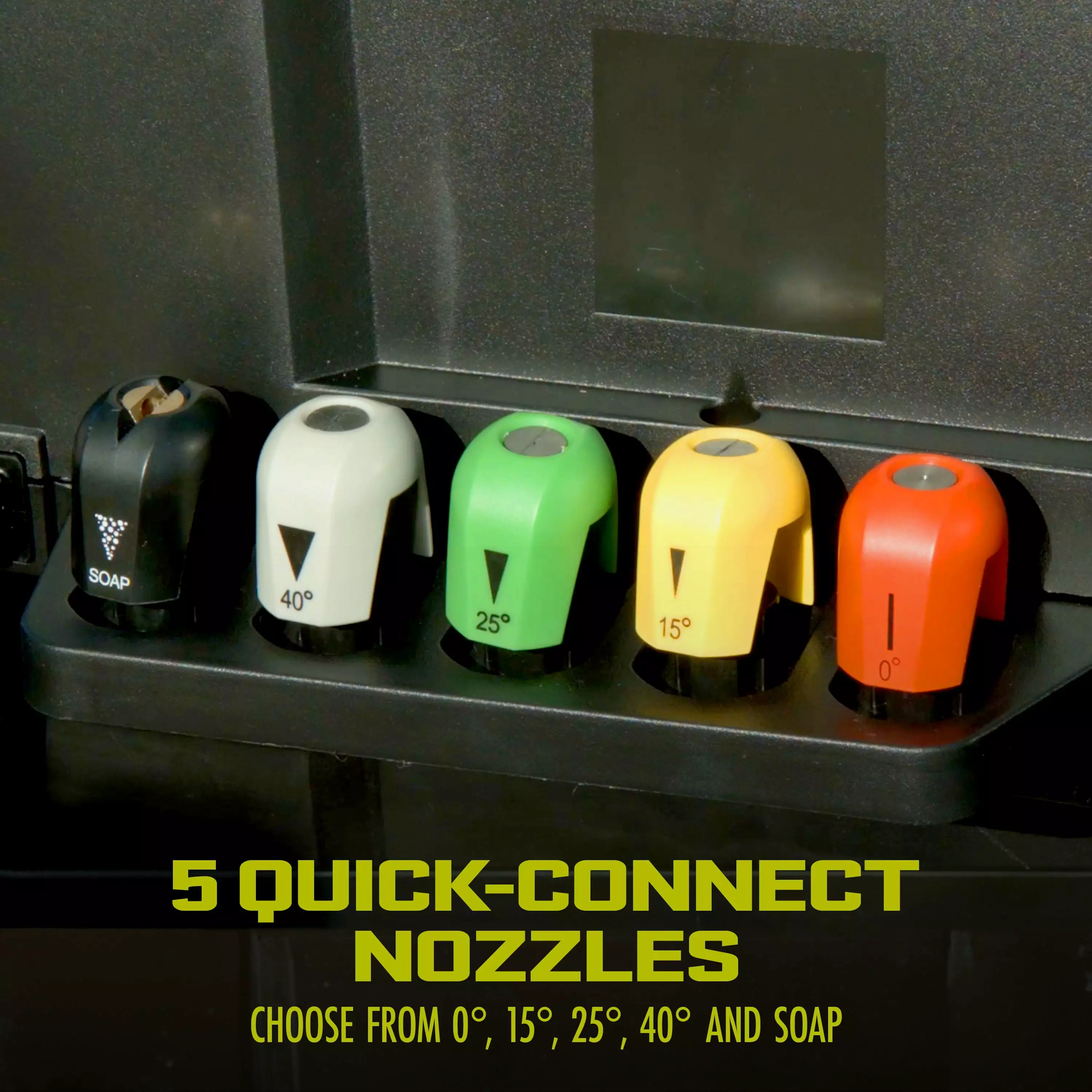 - 5 Quick Connect nozzles: 0o. 15o. 25o. 40o and soap