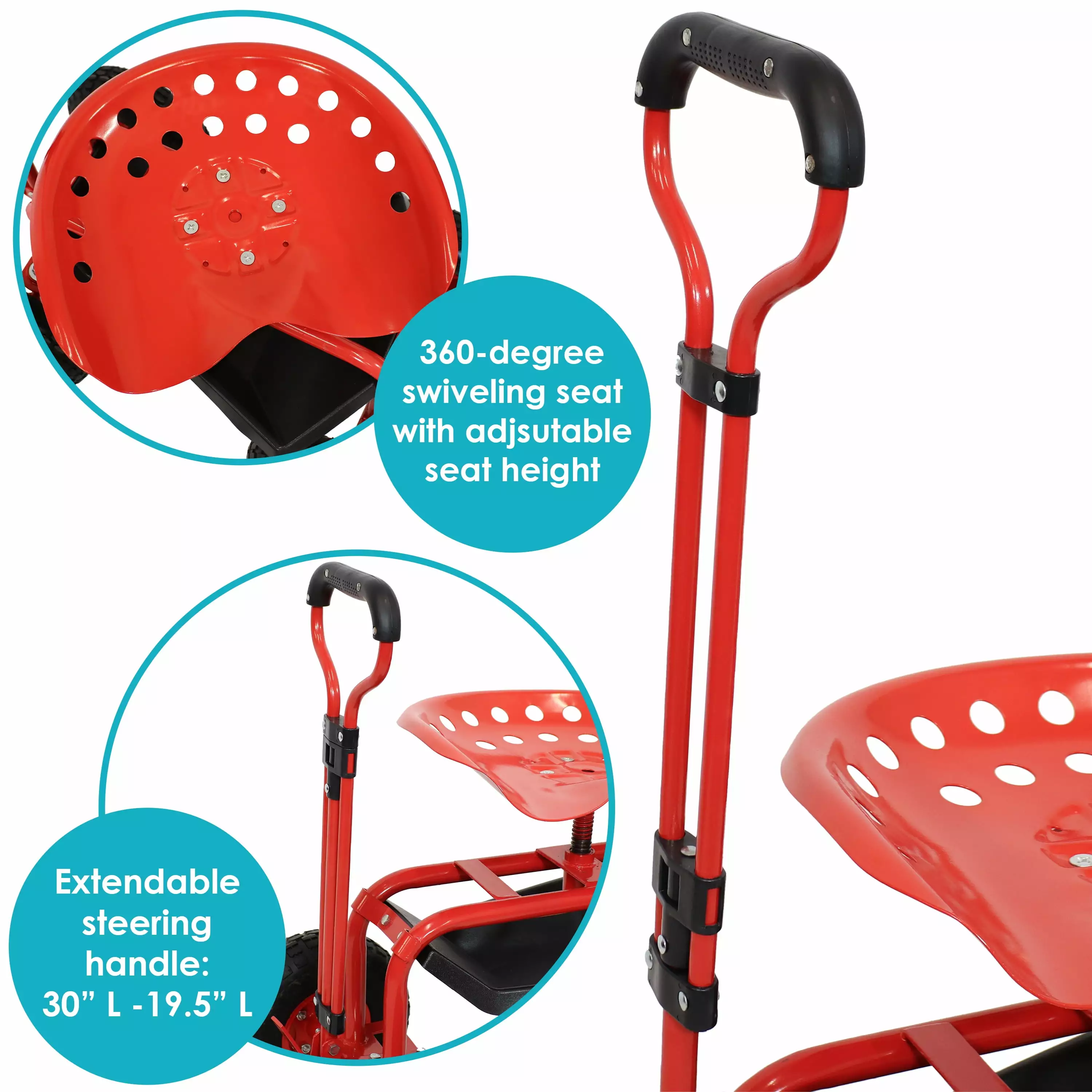 Sunnydaze Rolling Garden Cart with Steering Handle and Swivel Seat – Red