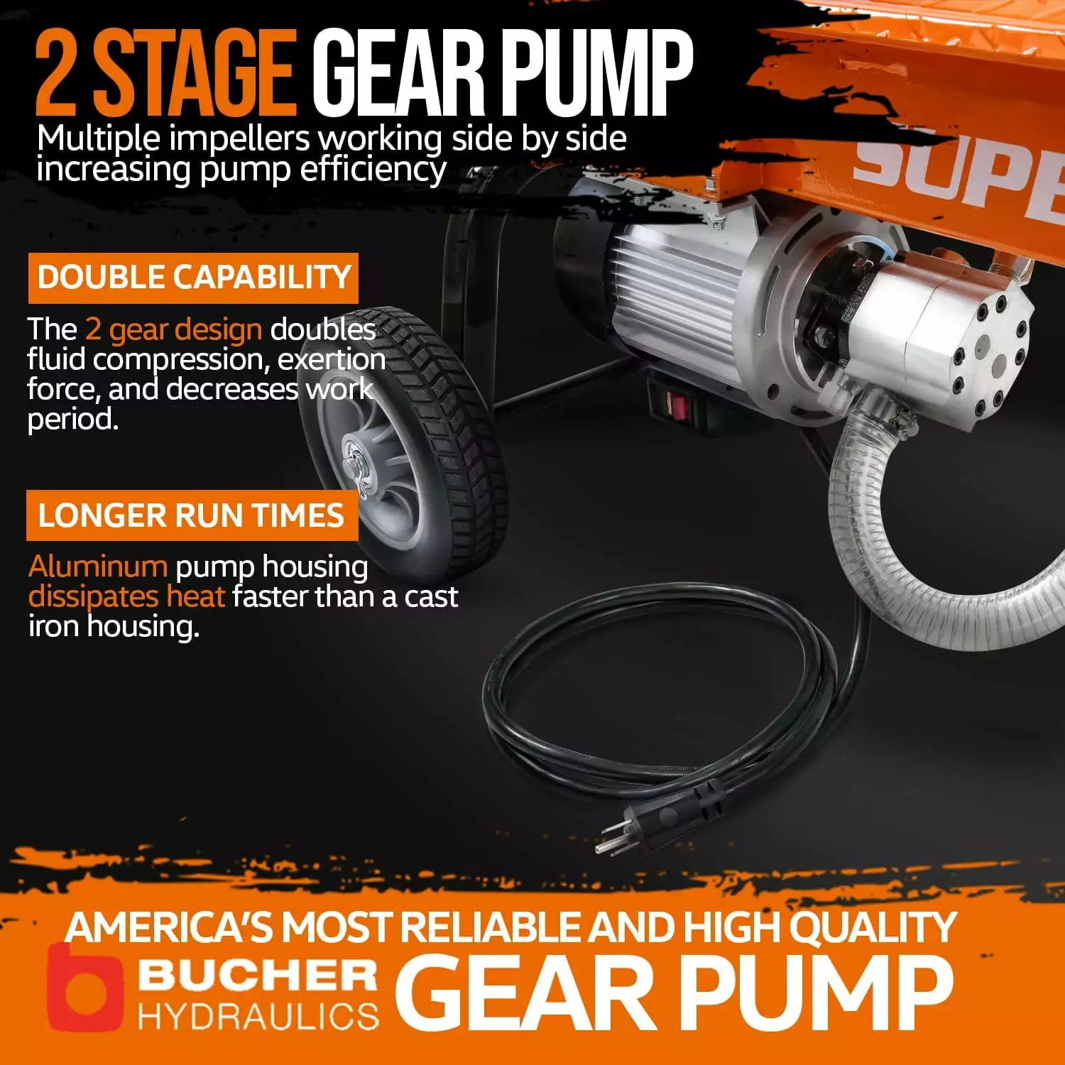 SPECS – Built with a heavy-duty 2.5eHP 15amp 1800W Electric Motor. powering our 14-ton rated system. utilizes the highly ultra-reliable and trusted 2-Stage 10.5GPM Bucher Hydraulic Gear Pump. with Rapid Auto Return that easily splits logs up to 20" inches in length and up to 14" inches in diameter; All weighing 126lbsPORTABLE DESIGN – Our lightweight horizontal full beam and steel wedge log splitter design is built to be portable with fast and easy set up for anywhere nature takes you; Complete with 8 inch Sturdy transport wheels. allowing for smooth maneuvering for easy transportation from site to siteEFFICIENT – Precision gear pump and brushless induction motor with copper windings allow for this Log Splitter to produce constant splitting force. providing a smooth linear power curve to help avoid clunky performance during operation; Effortlessly complete large splitting jobs with only a 16-second cycle time reset in-between log splitsECO-FRIENDLY – (Green and Safe). unlike gasoline-powered devices. electric-powered units produce no smog/fumes/emissions and are both gas and exhaust free; Can be used on the ground or on a workbench. outside and inside. while being quieter ONLY producing 65dB noise during operationSAFETY and PROPER USE – Always operate the Log Splitter with eye and hand protection. utilize the controls and shut off/on switch as needed;This log splitter is electric powered and does not require fuel to operate; (NOTE: HYDRAULIC FLUID NOT INCLUDED. AW32 Recommended)SPECS – Built with a heavy-duty 2.5eHP 15amp 1800W Electric Motor. powering our 14-ton rated system. utilizes the highly ultra-reliable and trusted 2-Stage 10.5GPM Bucher Hydraulic Gear Pump. with Rapid Auto Return that easily splits logs up to 20" inches in length and up to 14" inches in diameter All weighing 126lbs.PORTABLE DESIGN – Our lightweight horizontal full beam and steel wedge log splitter design is built to be portable with fast and easy set up for anywhere nature takes you Complete with 8 inch Sturdy transport wheels. allowing for smooth maneuvering for easy transportation from site to site.EFFICIENT – Precision gear pump and brushless induction motor with copper windings allow for this Log Splitter to produce constant splitting force. providing a smooth linear power curve to help avoid clunky performance during operation Effortlessly complete large splitting jobs with only a 16-second cycle time reset in-between log splits.ECO-FRIENDLY – (Green and Safe). unlike gasoline-powered devices. electric-powered units produce no smog/fumes/emissions and are both gas and exhaust free Can be used on the ground or on a workbench. outside and inside. while being quieter ONLY producing 65dB noise during operation.SAFETY and PROPER USE – Always operate the Log Splitter with eye and hand protection. utilize the controls and shut off/on switch as needed This log splitter is electric powered and does not require fuel to operate (NOTE: HYDRAULIC FLUID NOT INCLUDED. AW32 Recommended)
