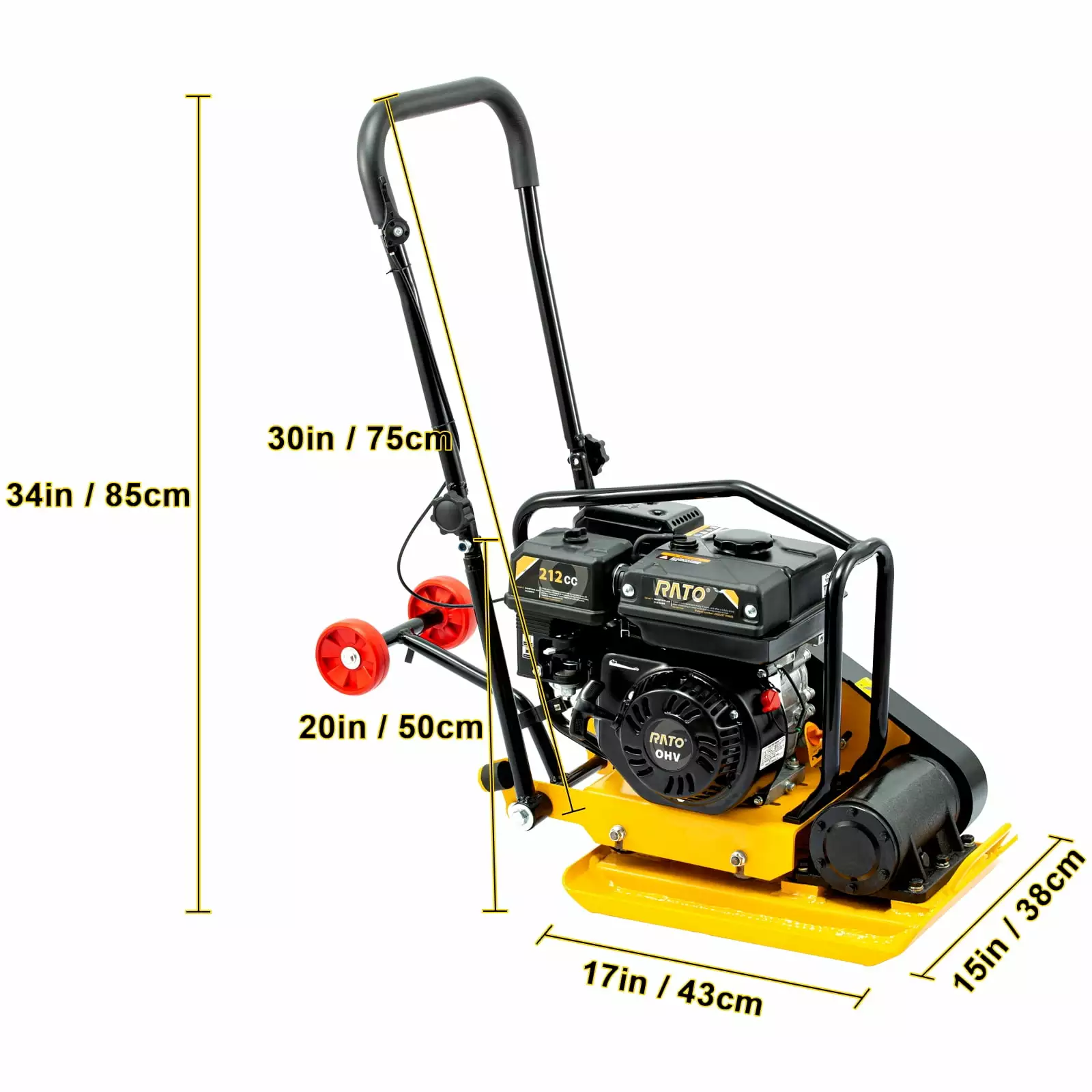 ??RAPID TAMPING??- Adopt a one-piece cast steel base plate. strong and durable. The 17” x 15” / 43cm x 38cm one-piece stamped plate can forward 82 ft/min. Climb Ability: 0-30%. Thickened stamped platethickness 4 / 10mm) can be stamped at the soil depth of 7.87 / 20cm.