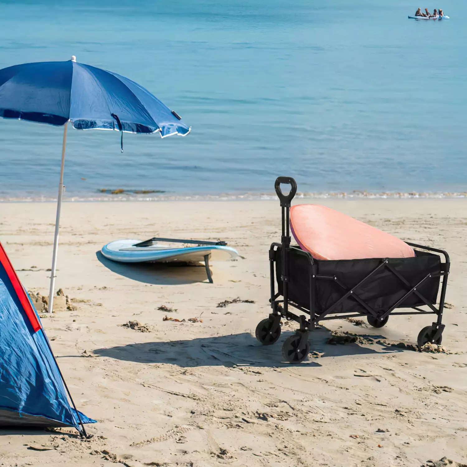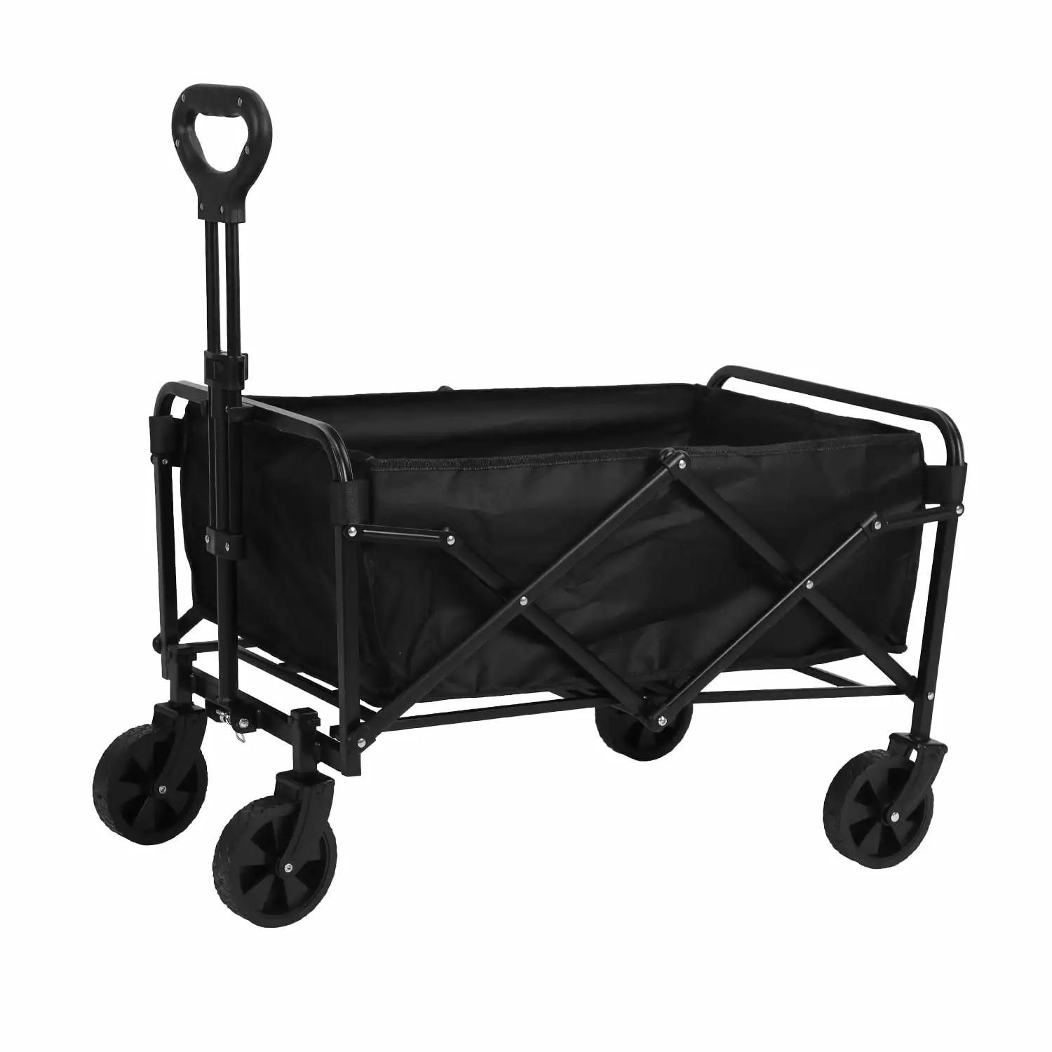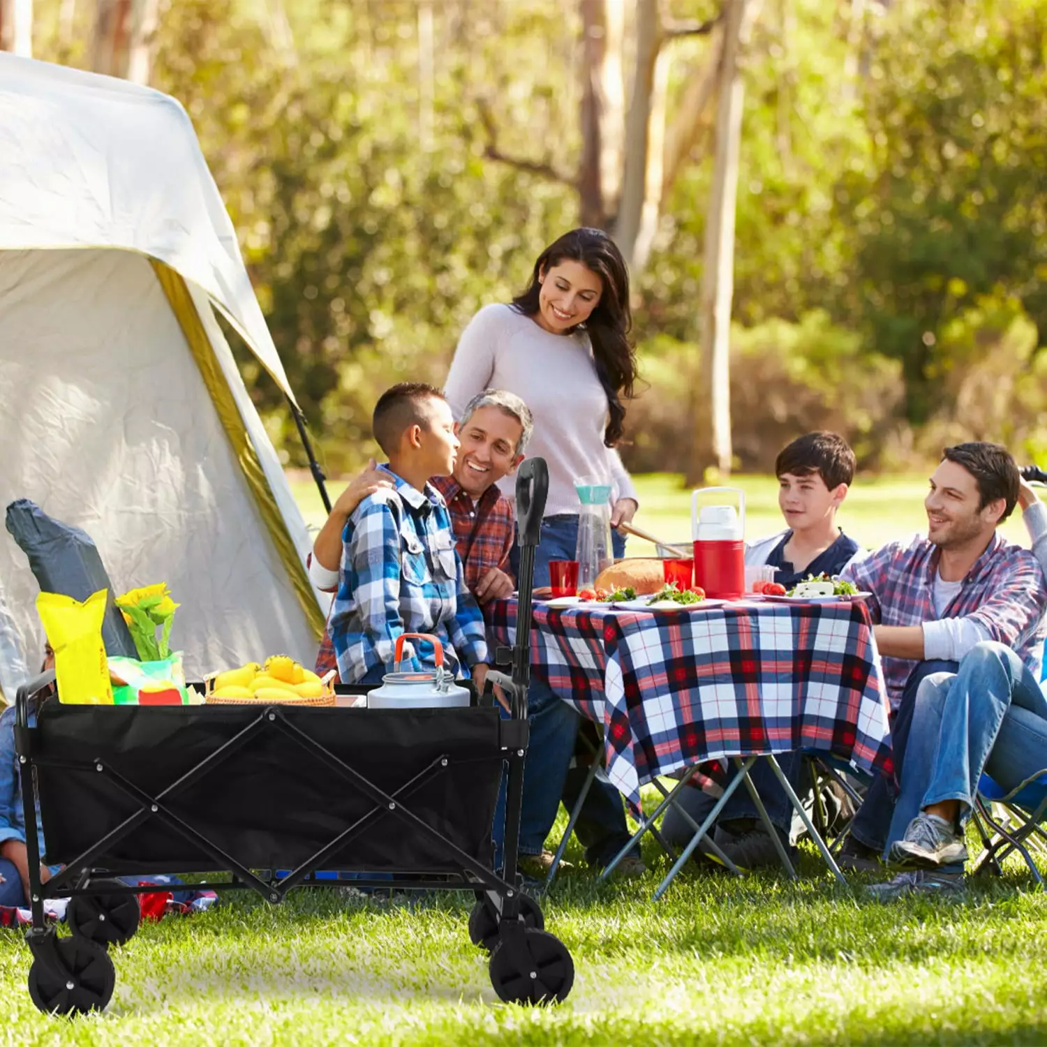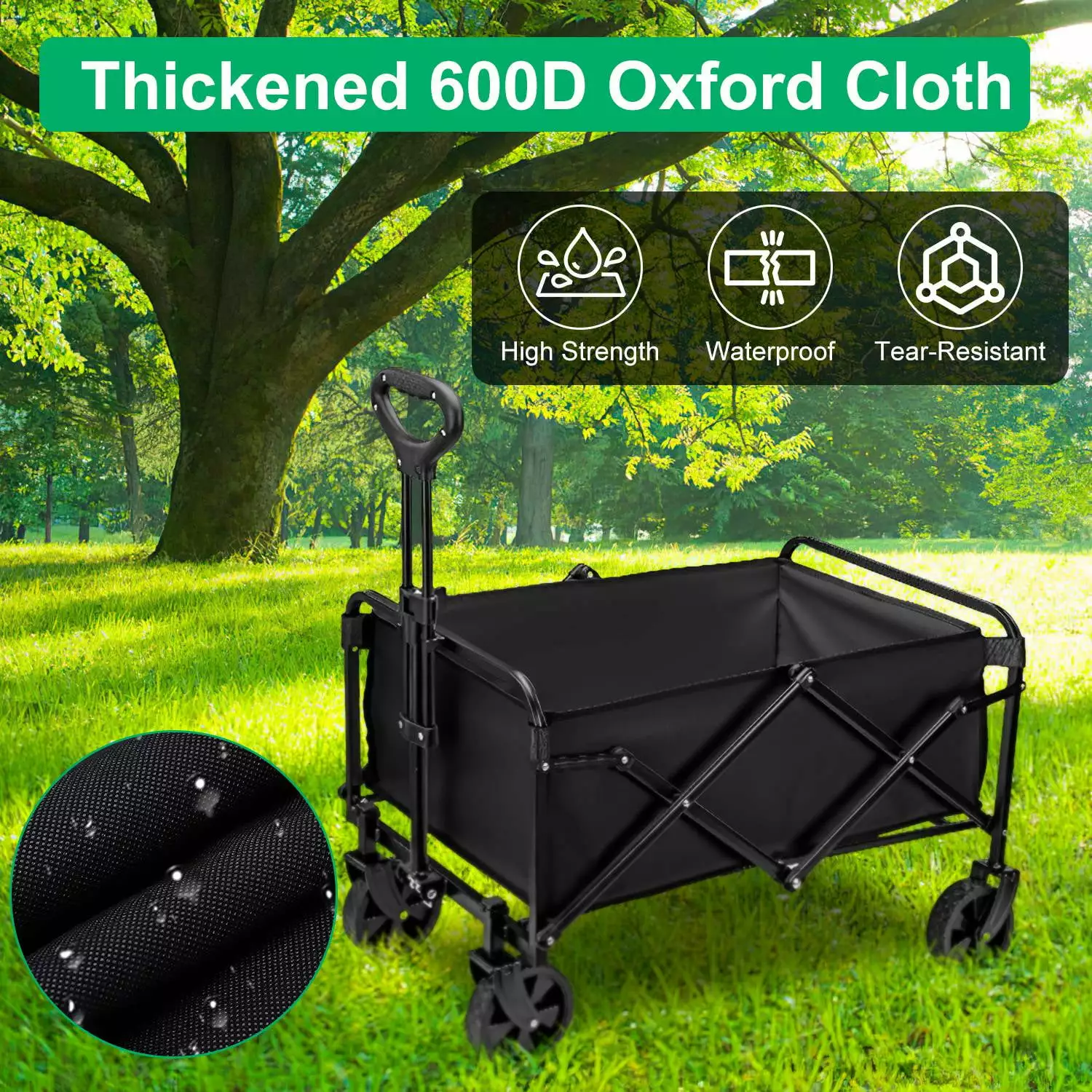 Teqhome 100L Collapsible Wagon Cart 220LBS Load Capacity Camping Wagon with Adjustable Handle 5 All-Terrain Wheels for Outdoor Beach Garden Picnic Shopping Black