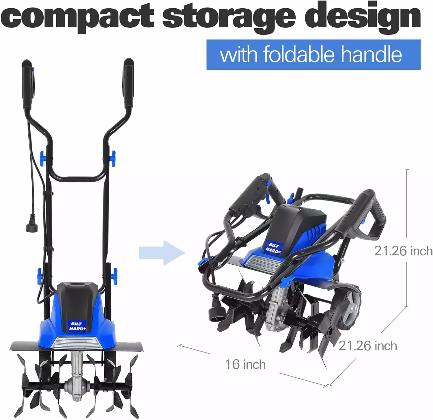 - Powerful and Safety Motor – Electric Tiller whose AC motor speed is up to 19.000RPM cultivates up to 16 width x 8.7 depth.