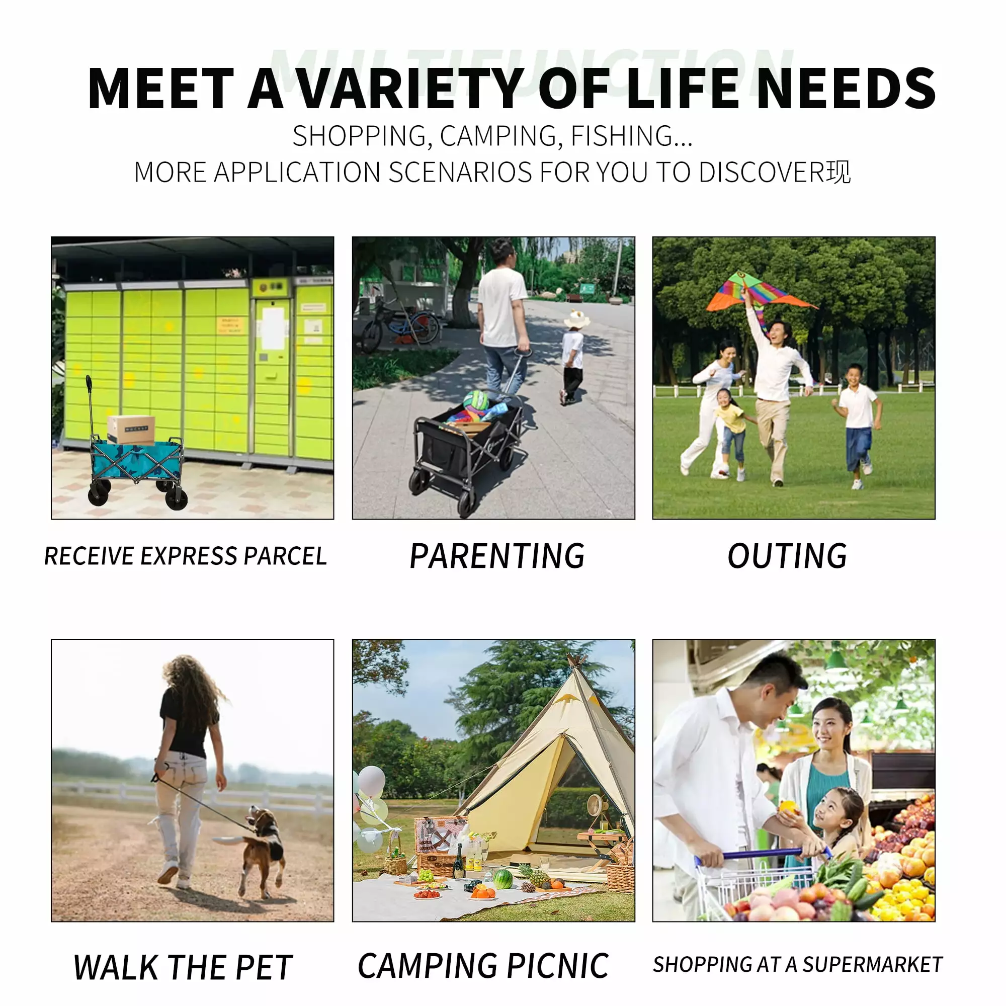 - –Portable foldable practical wagon: carry your beach bag. fitness equipment. fitness equipment. outdoor games. baseball bags. backyard games. sports and outdoor toys. camping accessories. beach umbrellas. outdoor storage. outdoor toys