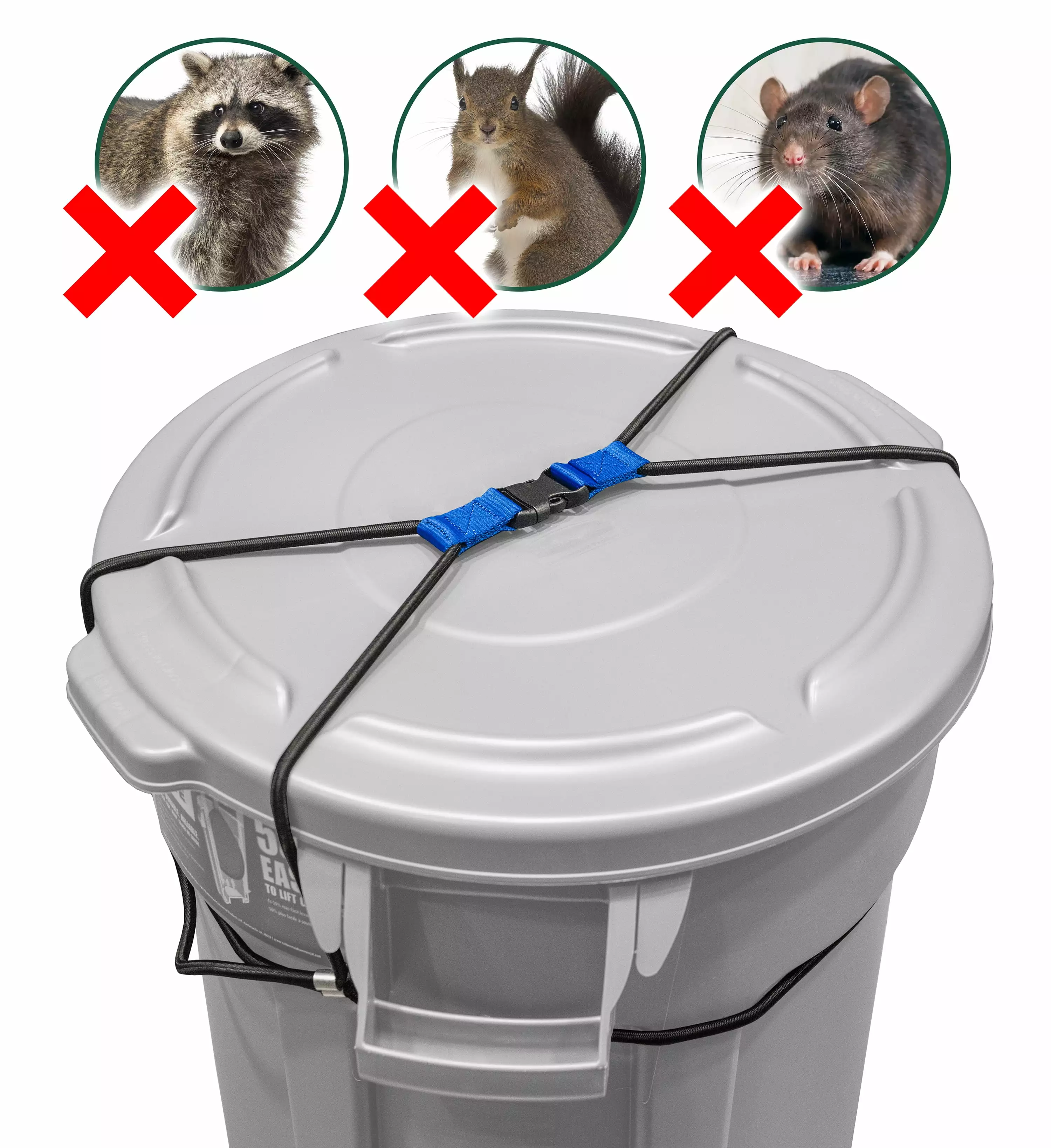 - Our simple and effective TrashLock cord system keeps pesky animals out of your outdoor trash cans!