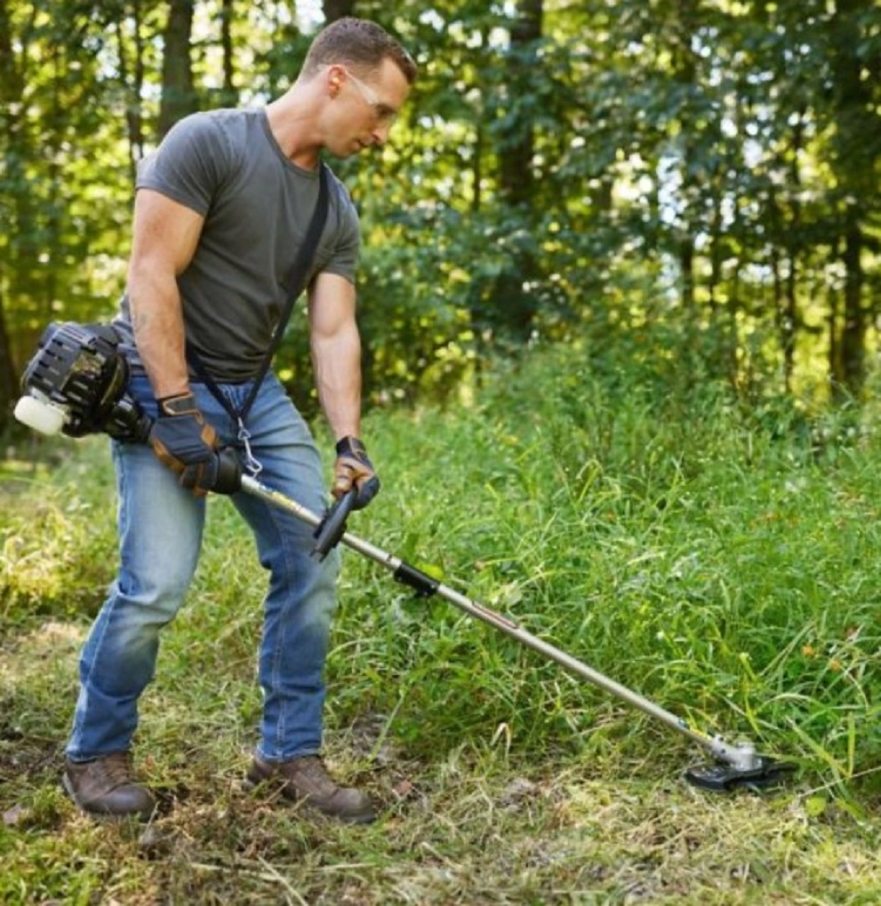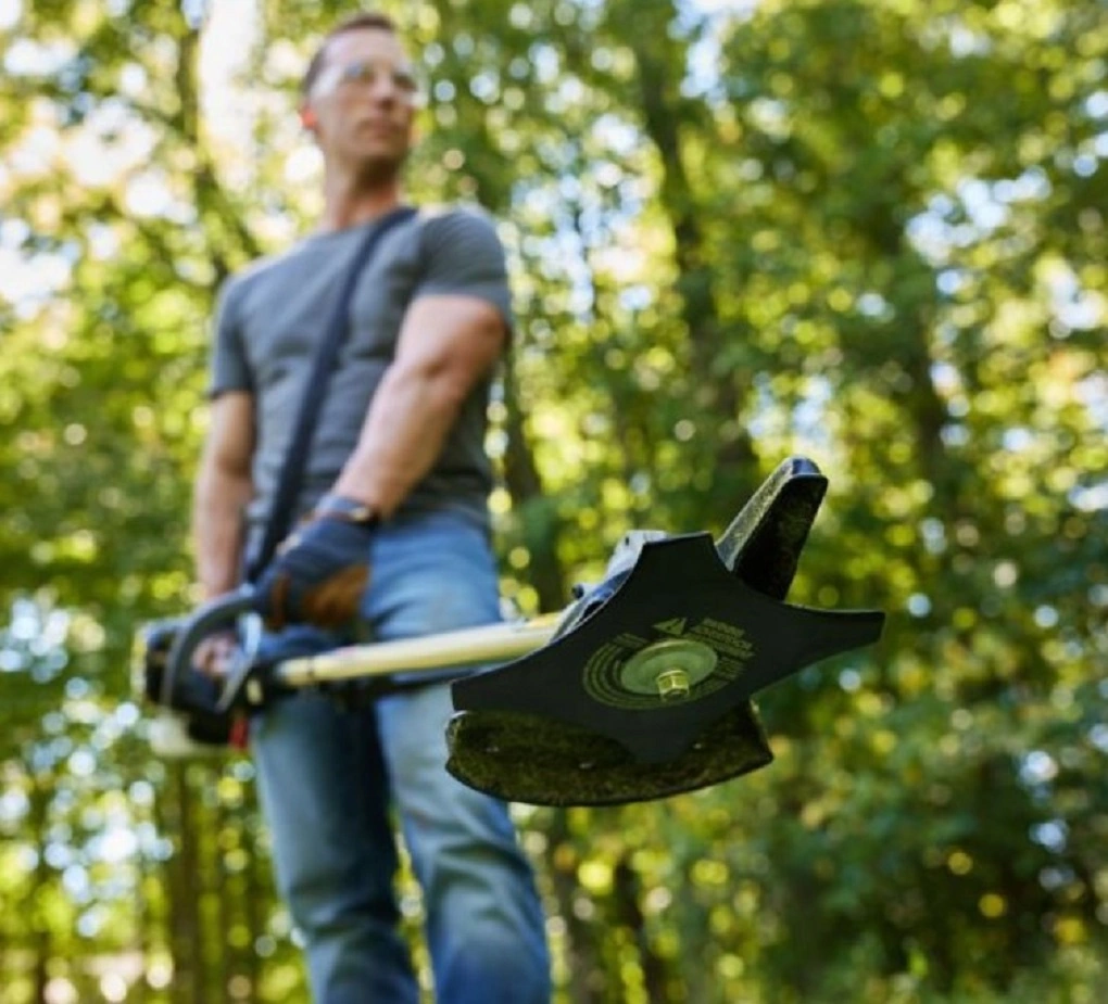 - Includes a quick attach brush-cutter attachment; The 4-tooth steel brush blade cuts through heavy vegetation and weeds with ease. while the pro-style straight shaft design helps you trim in hard-to-reach places