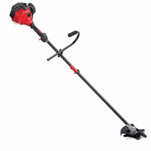 | Features | 27cc. lightweight 2-cycle engine is comfortable for everyone. Greater comfort and less vibration with full-crank engine. SpringAssist technology for easier pull starts. Doubles as a string trimmer with Click ‘N Trim easy to load bump head. 18 in. cutting swath cuts larger areas of grass in less time. 8 in. 4-tooth steel brush blade for heavy vegetation. Straight shaft trimmer for greater reach under shrubs. around fence posts and other obstacles. TrimmerPlus attachment capable – more versatility. less storage space (TrimmerPlus attachments sold separately). Adjustable J-Handle provides added control and easy right or left-handed use. Includes shoulder strap and 2-cycle engine oil |