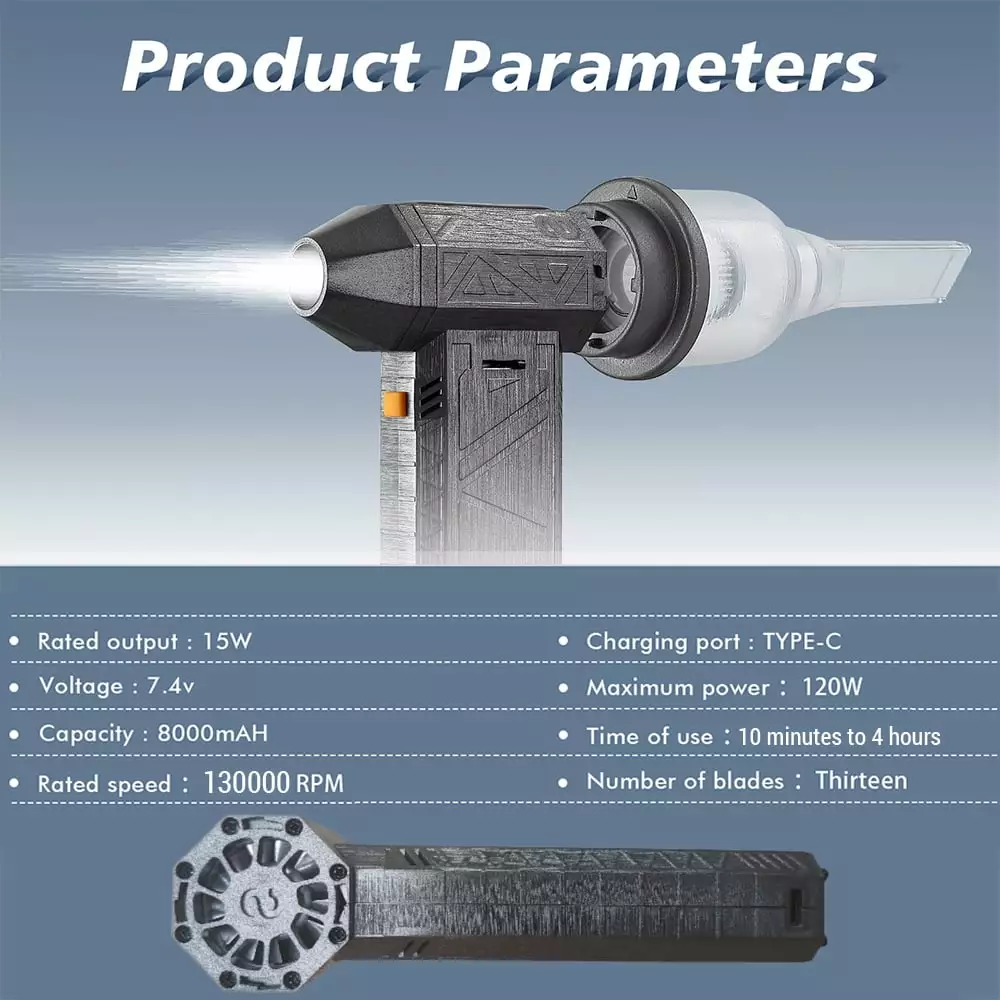 This versatile jet blower is engineered to deliver a powerful airstream suitable for a variety of applications. Boasting a high RPM. it can surfaces. clear debris. and supply airflow for diverse purposes.