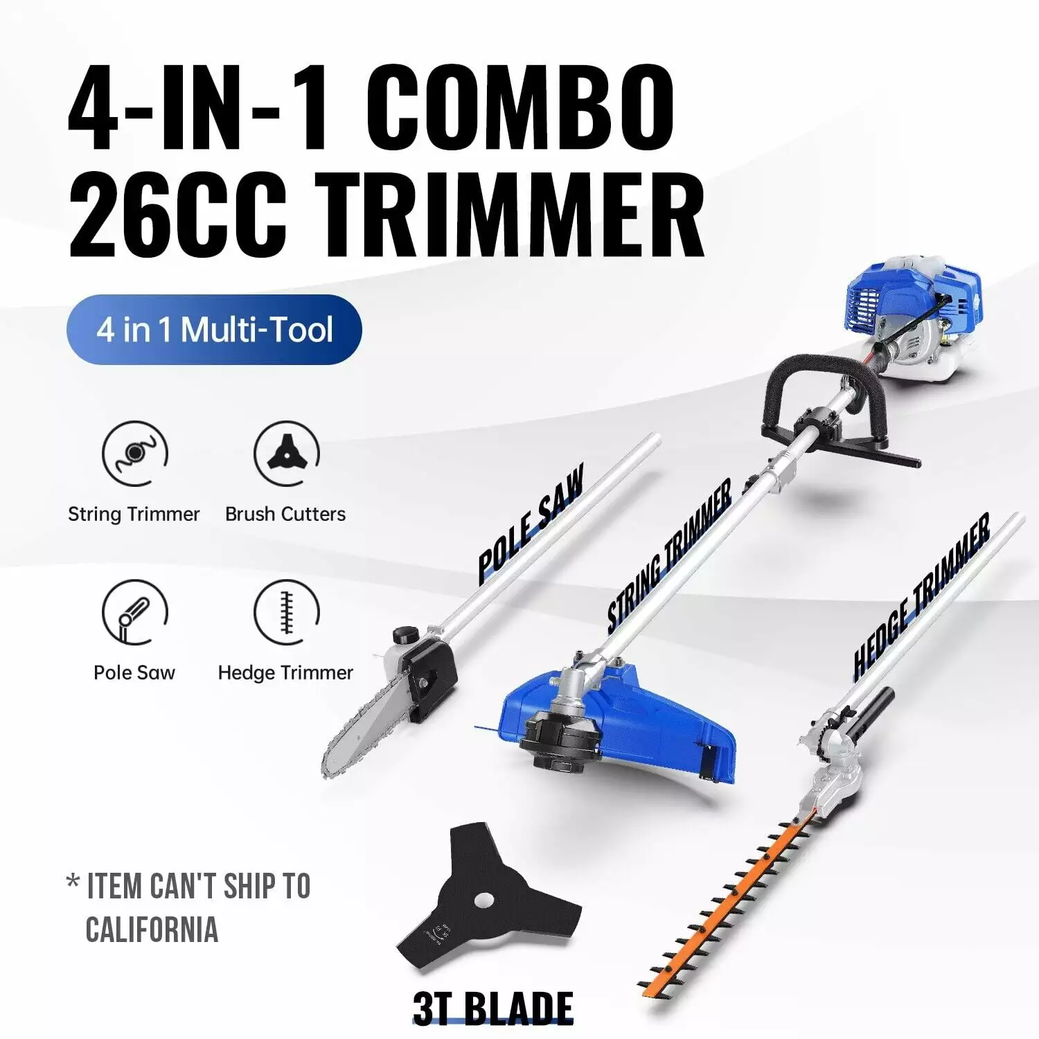 - 4-in-1 combo-includes string trimmer attachment. brush cutter blade. hedge trimmer attachment and articulating pole saw attachment