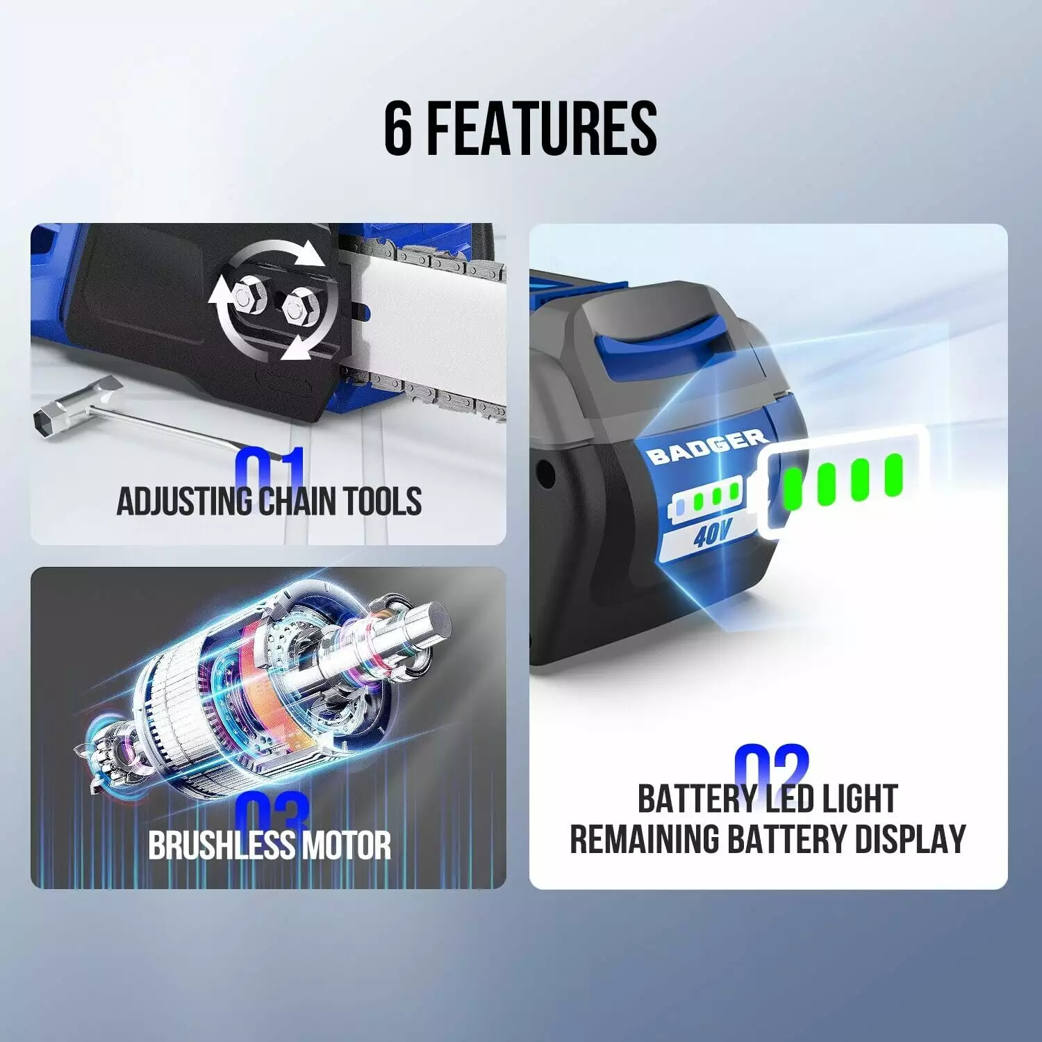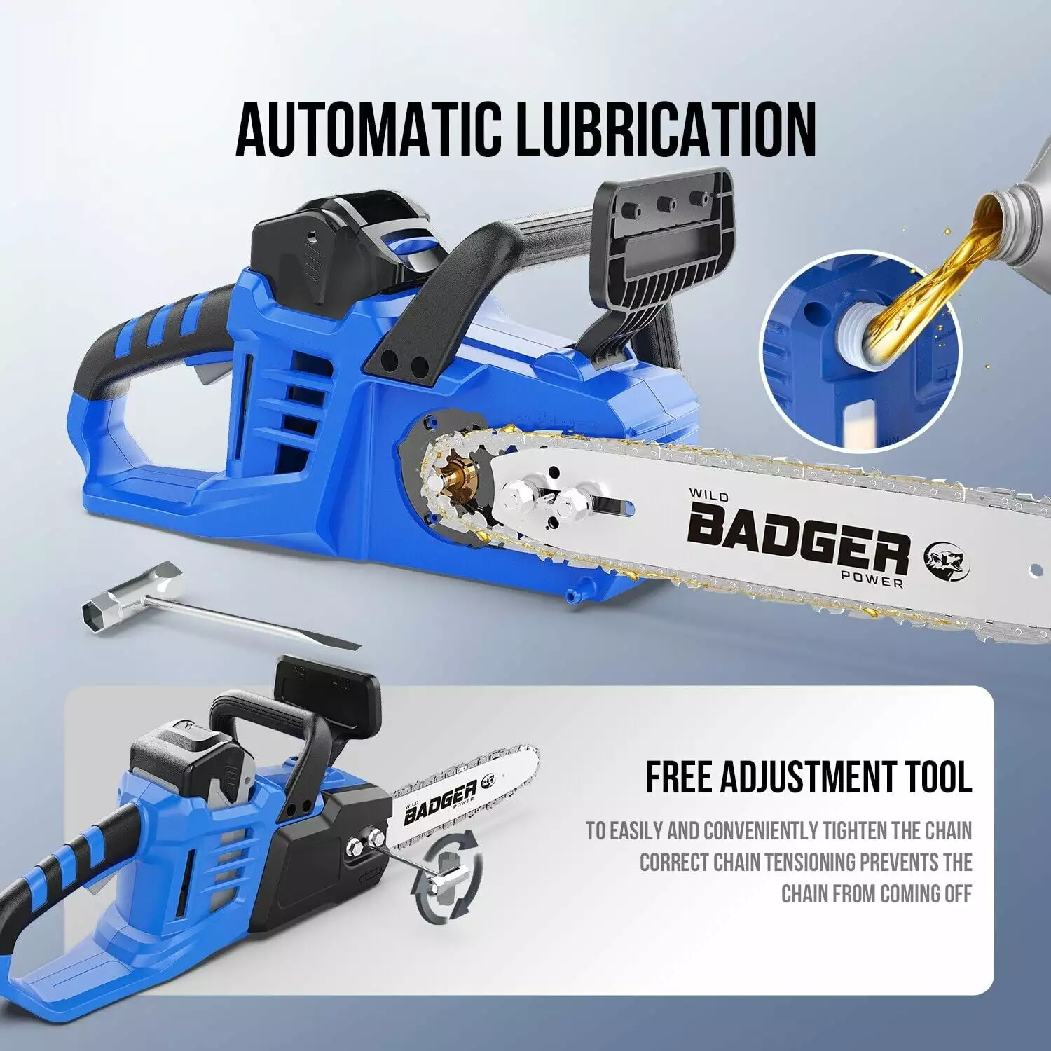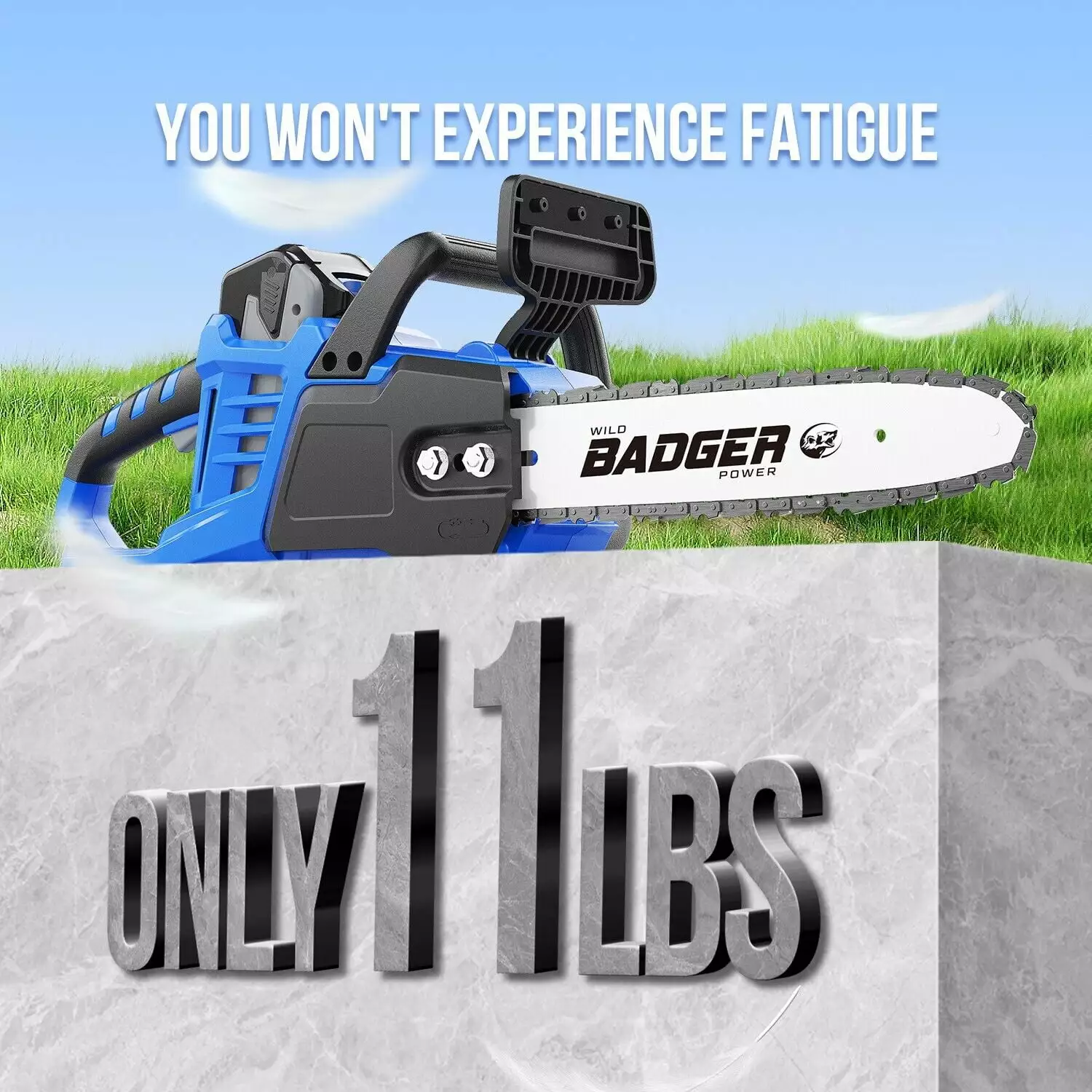 - Wild Badger Power Cordless 40 Volt 16-inch Brushless Chainsaw. Includes 4.0 Ah Battery and Clip-on Charger – Wild Badger Power