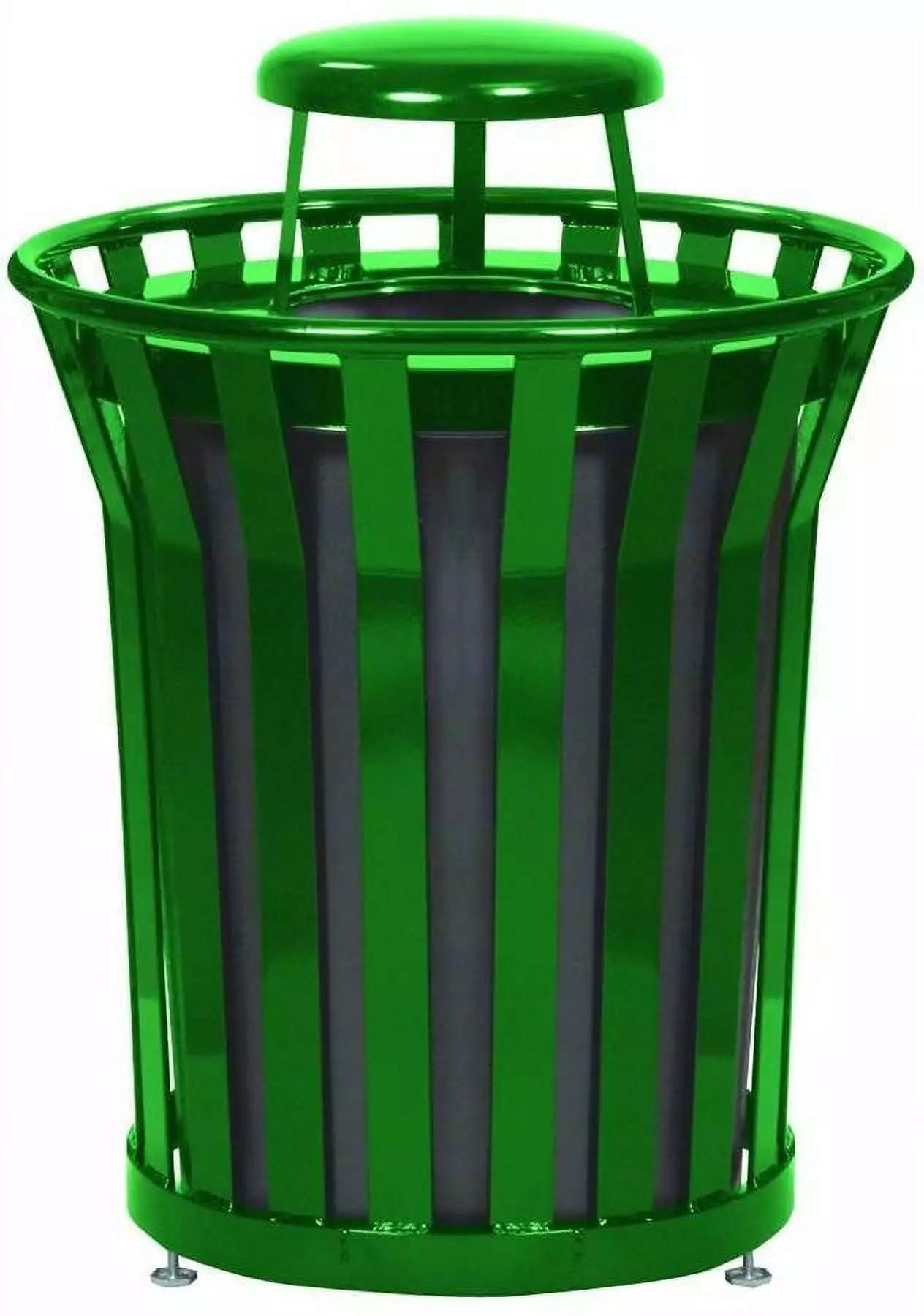Heavy duty steel receptacle with rain cap lid. Made of flat bar steel to defer graffiti. Comes with plastic liner.- SKU: WITTIN392