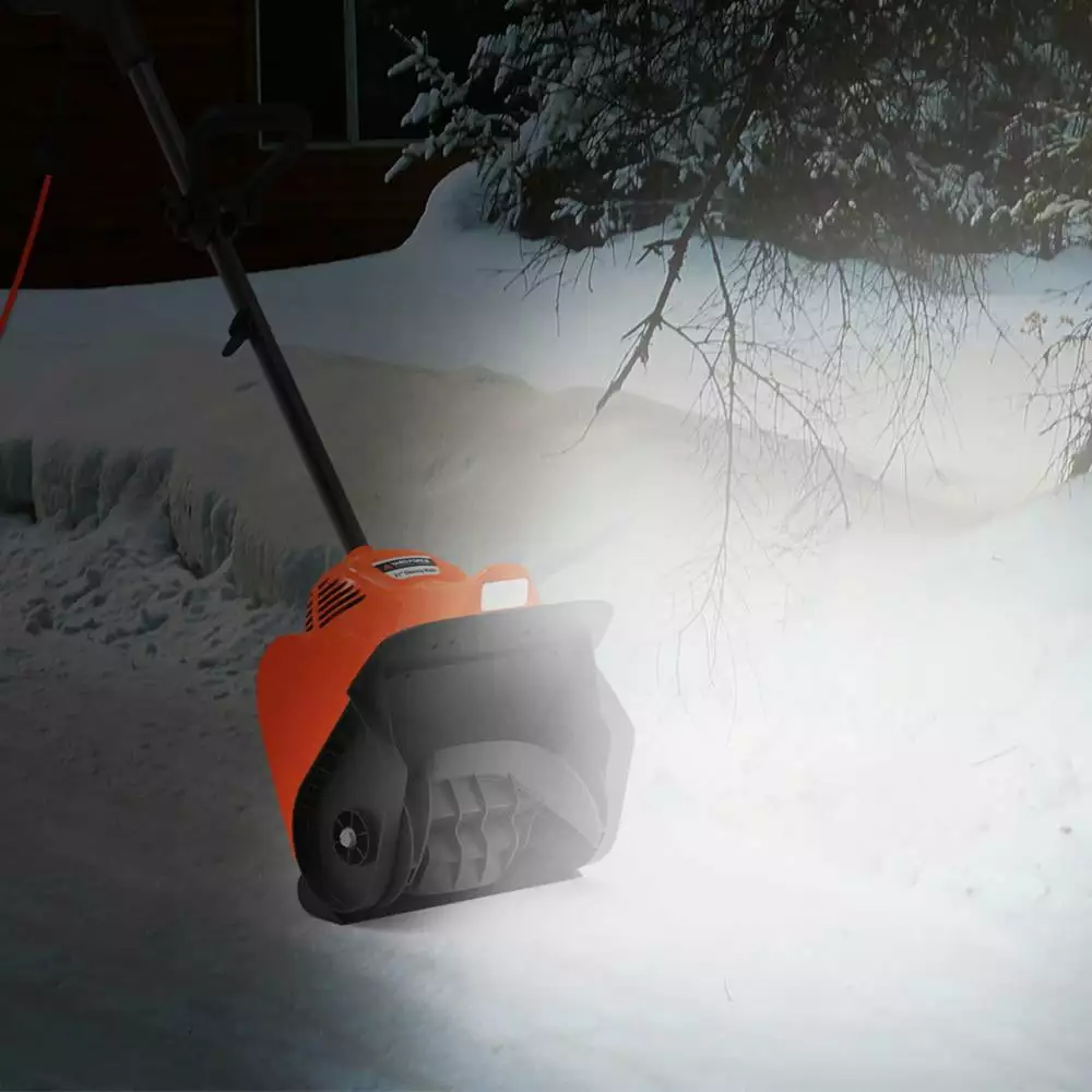 - Super-bright LED light illuminates the area for safe clearing of snow