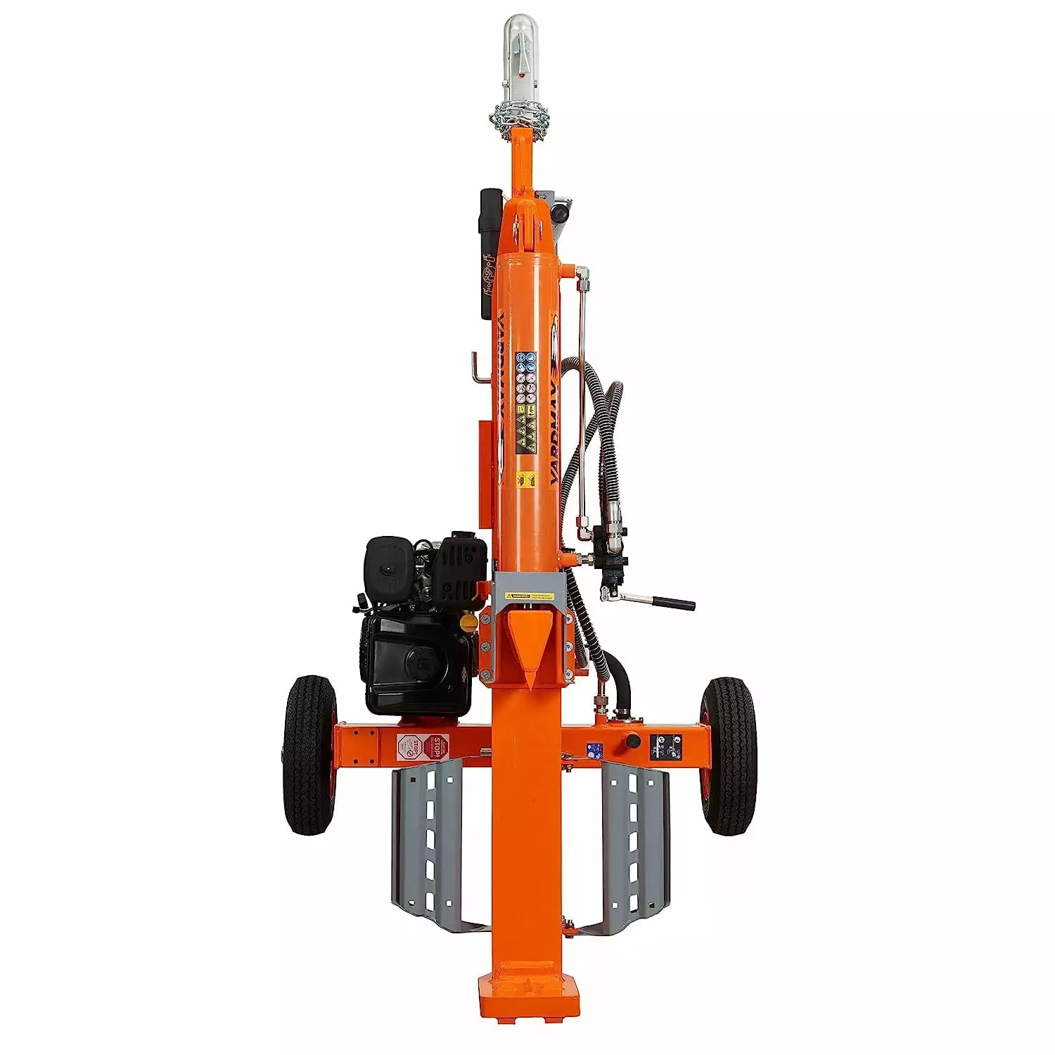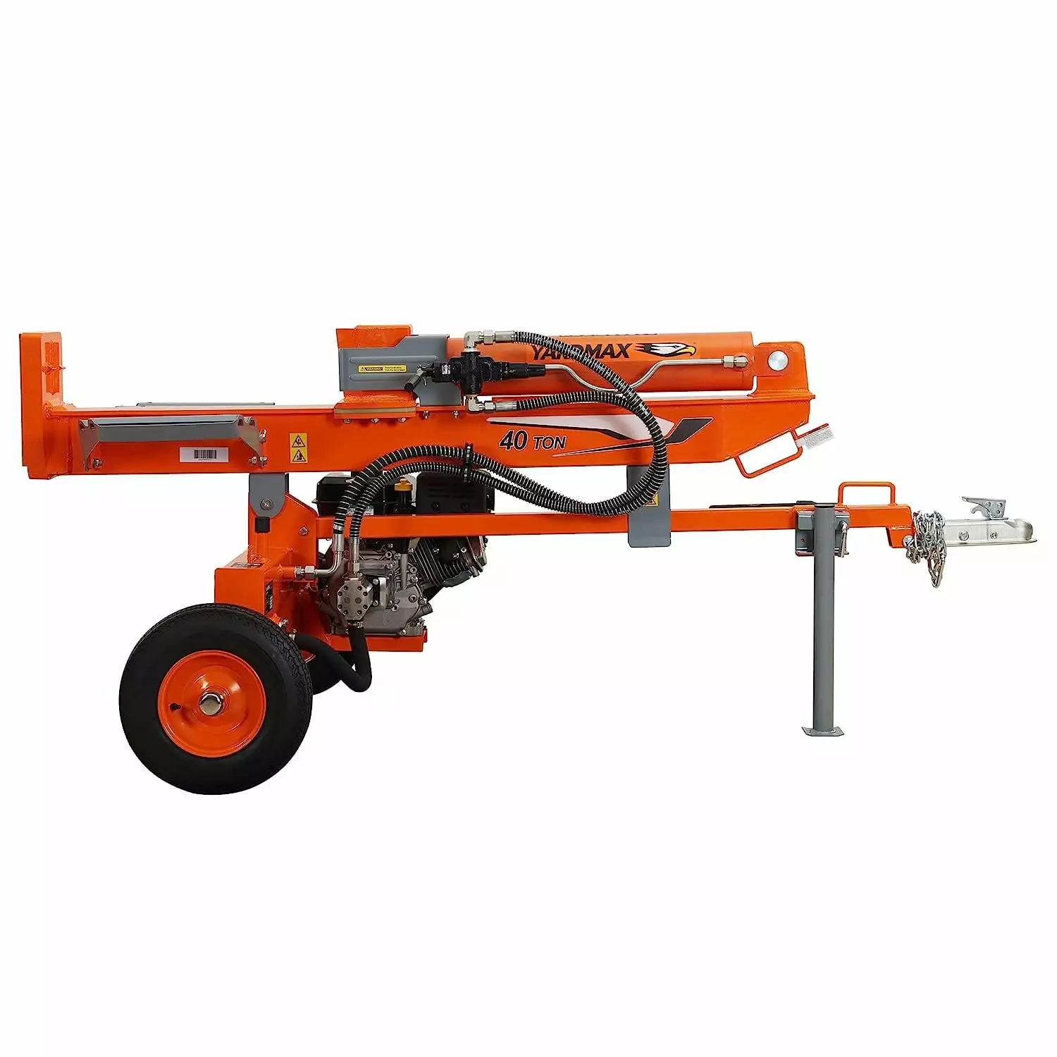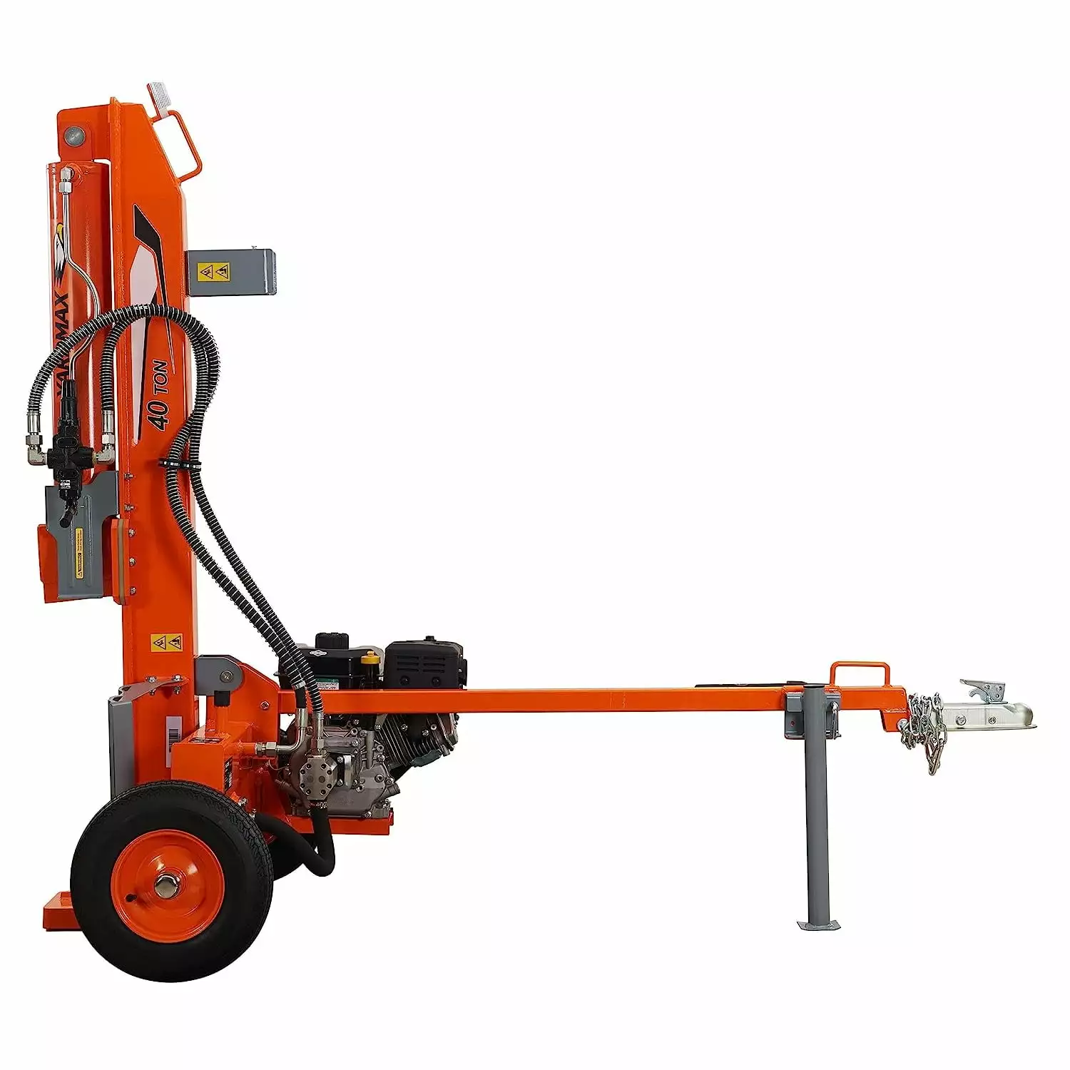 This 40-ton full-beam high-powered wood splitter is sturdy enough and powerful enough to handle heavy-duty log splitting jobs. The patent-pending U-beam design is significantly stronger and more durable than the typical I beam found elsewhere. Powered by a Briggs and Stratton Cr950 engine. and ergonomically designed for optimal performance. safety and ease of use. this horizontal and vertical log splitter cuts through wood effortlessly and efficiently. log after log. The size and weight make it a great option for frequent towing. Other features included as standard are protective log cradles on both sides. solid stamped steel fenders.
