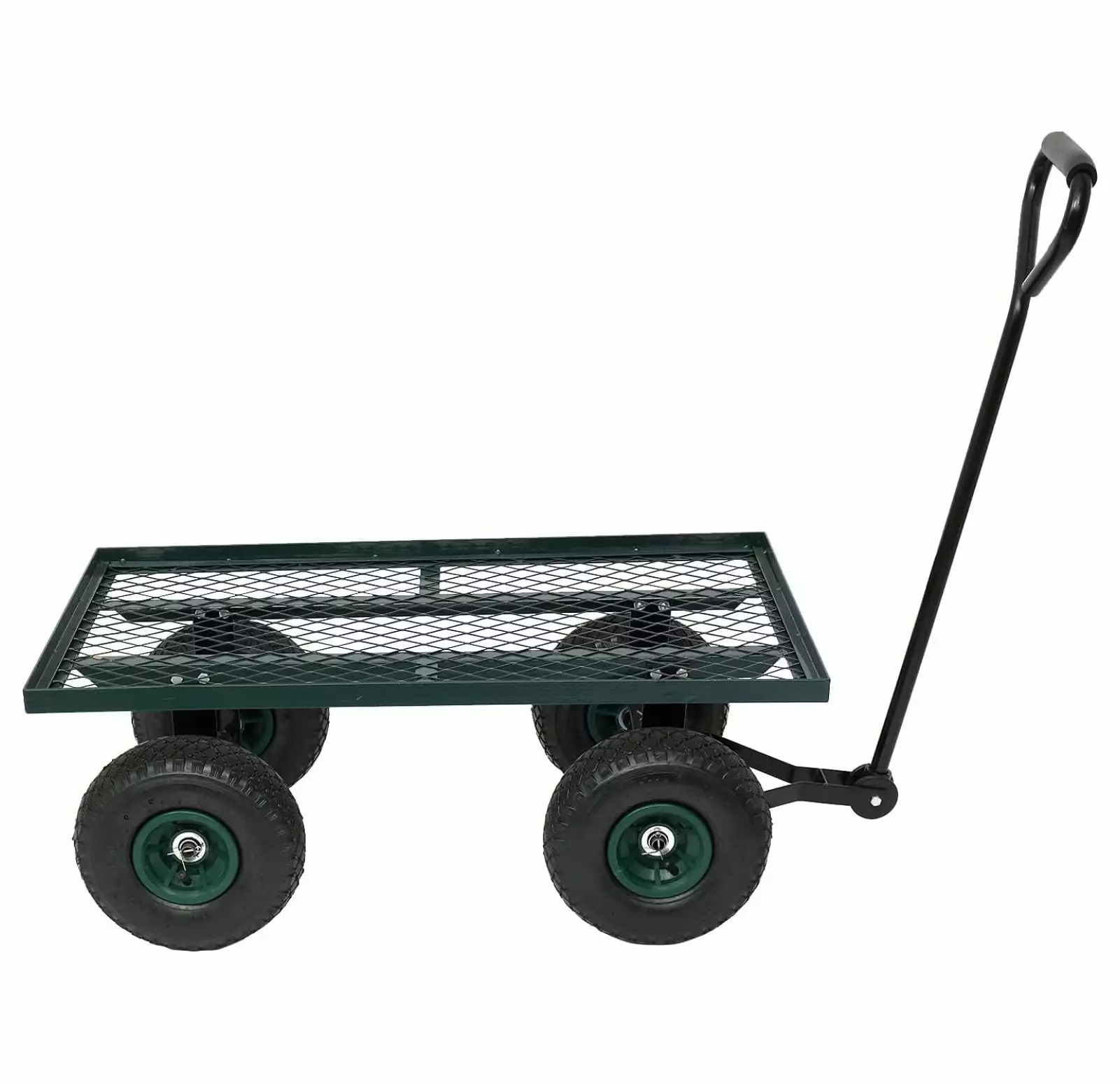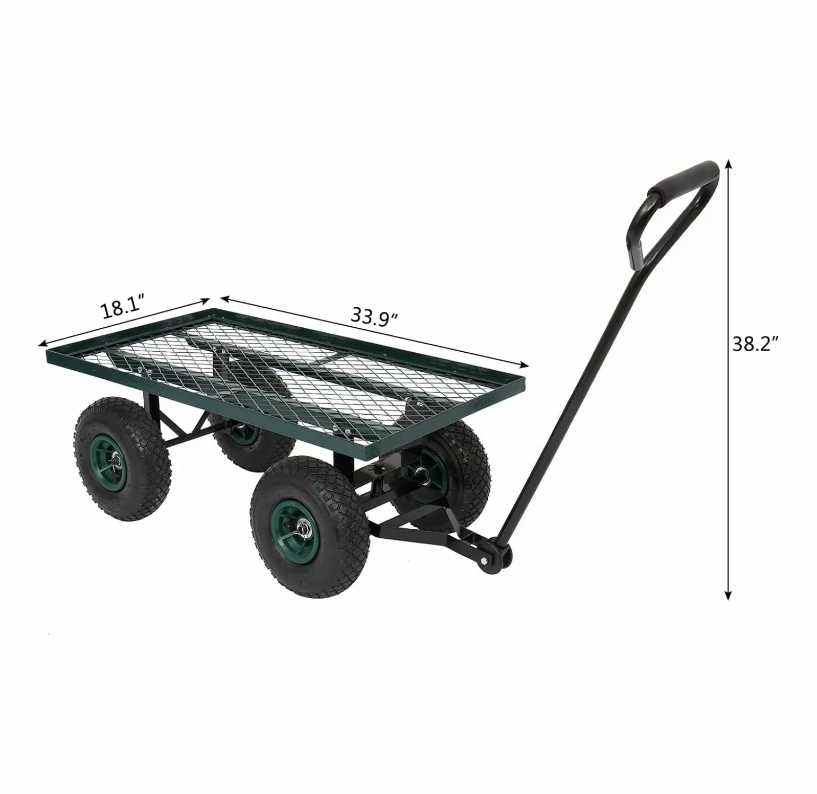 - ???Solid Structure?? Constructed from heavy duty metal frame. the metal deck garden wagon is durable and sturdy. With the powder coated finish. the cart could be used for a long time. The hollowed out grid design allows it not to collect water and rust when used in rainy days.