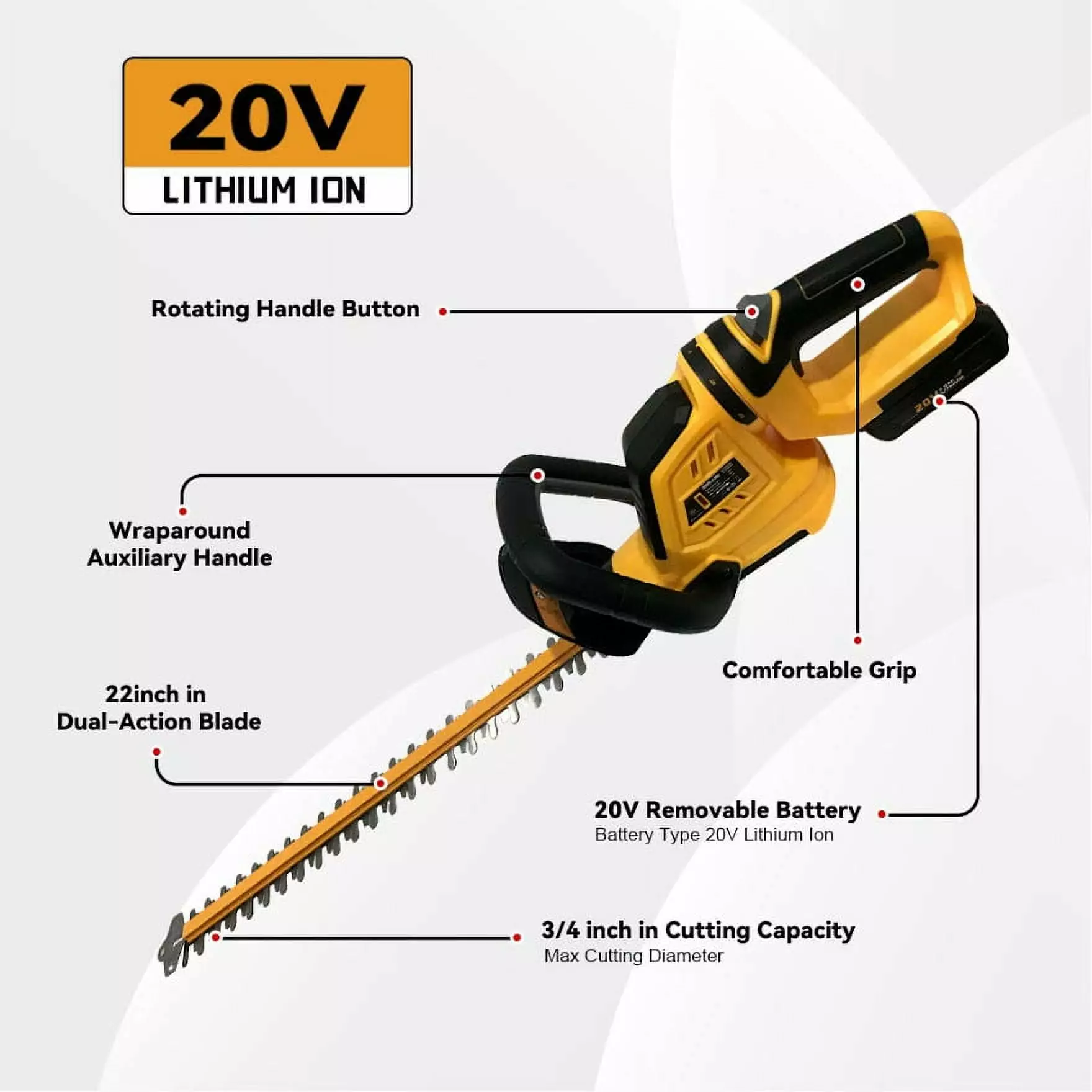 ZEGJAW 20V Cordless Hedge Trimmer with 22inch Dual Action Blade. Cozy Grip Handle. Include 20V Removable Battery