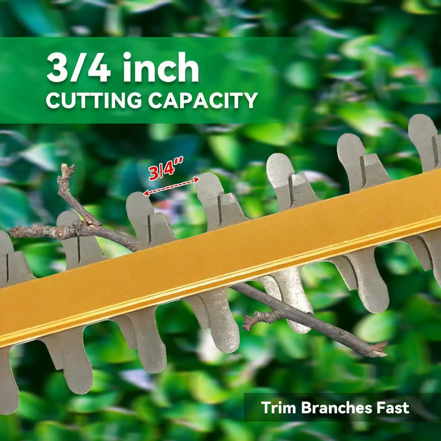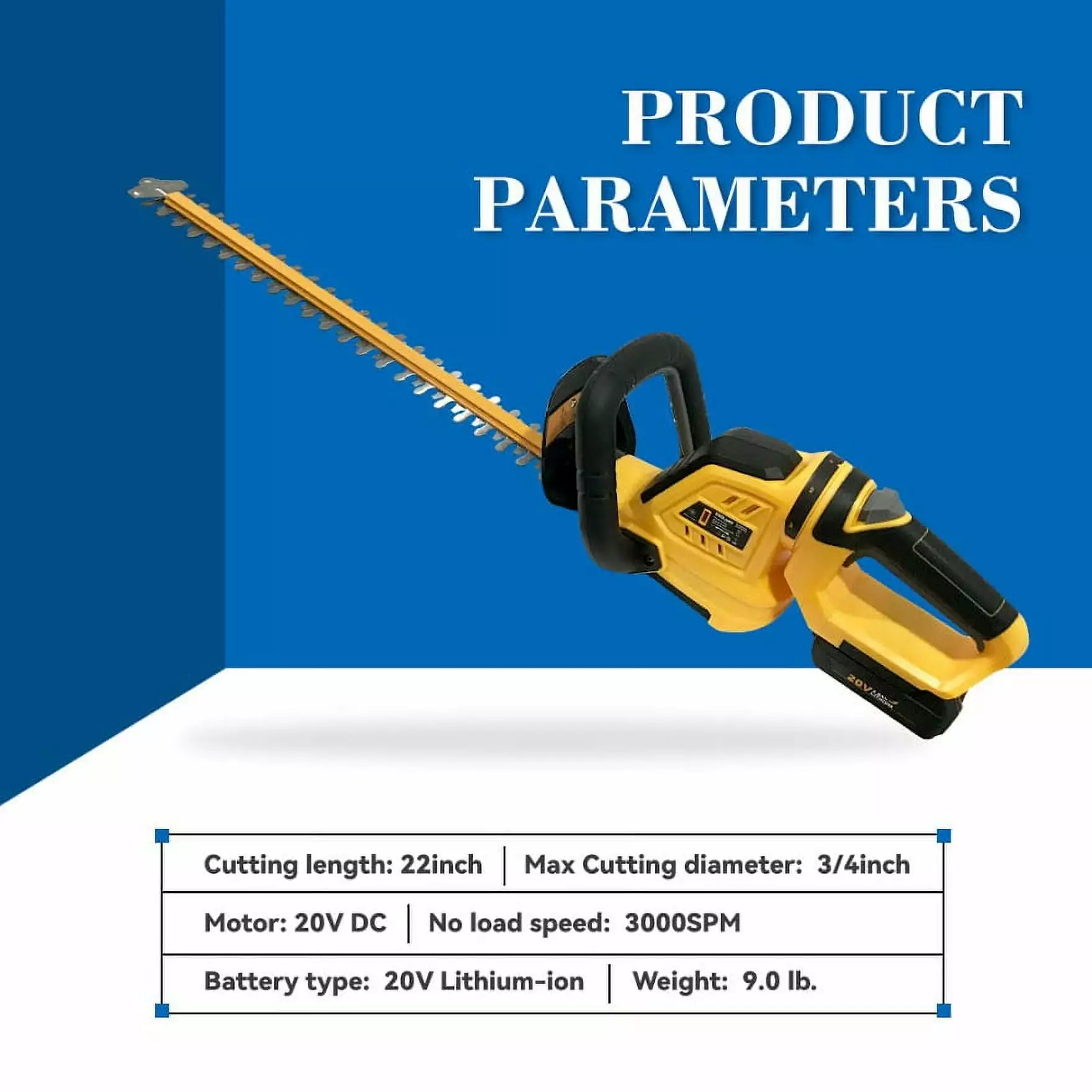 The electric hedge trimmer is equipped with a 20V 2AH lithium battery that can provide power and running time for most fine-tuning tasks. and can be used continuously for 30 minutes.